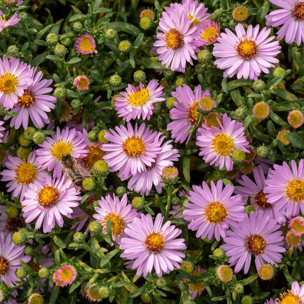 To niski aster jesienny, który ładnie kwitnie na rabacie, podczas gdy wiele bylin już zamiera. Dobrze wygląda sadzony w grupach, bo tworzy wyraźną, uporządkowaną plamę koloru. Astry krzaczaste nazywamy potocznie "Astrami Marcinkami".