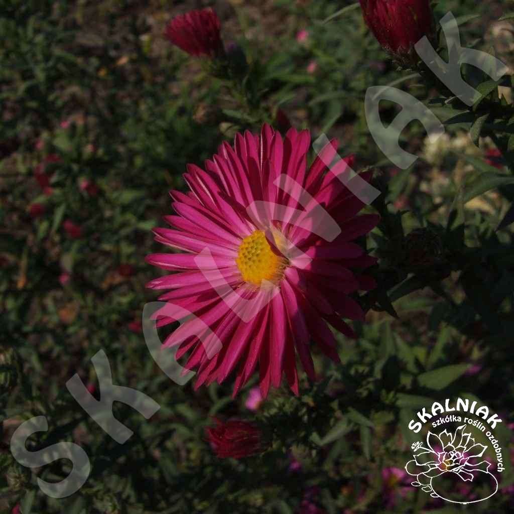 Roślina tworzy kępę z zielonymi liśćmi, a jesienią pokazuje liczne koszyczki kwiatowe w odcieniach ciemnegoróżu, z wyraźnym żółtym oczkiem. Dorasta zwykle do około 90 cm wysokości, a kwitnienie przypada na jesień, często utrzymując się długo przy sprzyjającej pogodzie. Warto mieć na uwadze, że w czasie ulewnych deszczy pędy mogą czasem wymagać podparcia.
