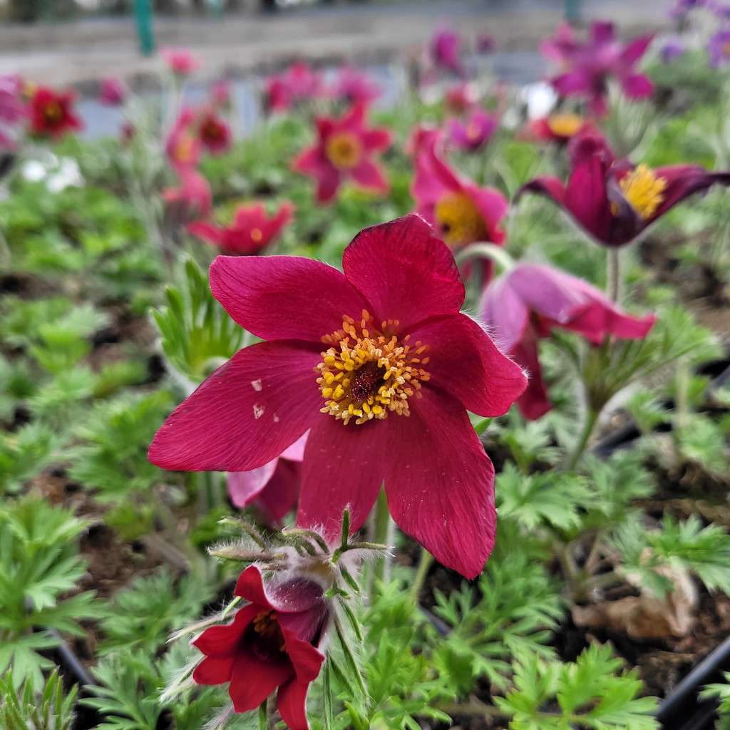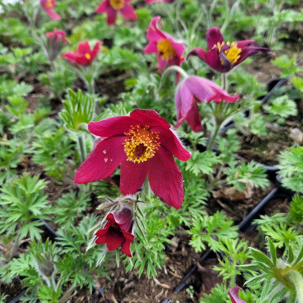 Sasanka zwyczajna 'Pinwhell Dark Red' - to bylina osiągająca około 20 cm w trakcie kwitnienia. Sasanki kwitną wczesną wiosną jako jedne z pierwszych bylin po mijającej zimie. Sasanka zwyczajna 'Pinwhell Dark Red' ma duży kwiatostan koloru czerwonego. Po przekwitnięciu sasanka wytwarza charakterystyczny okrągły, duży, dmuchawiec, rozsiewając się na boki. Sasanki dobrze rosną w otoczeniu drzew i krzewów, ale także doskonale wyglądają na skalniakach. Polecana do łączenia z innymi bylinami wczesnej wiosny, np.: zawilcem, fiołkiem, prymulką, gęsiówkami.
