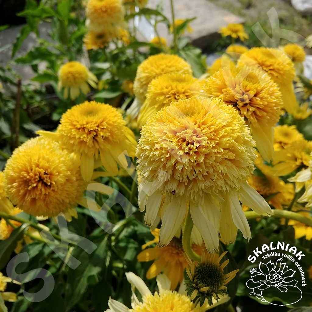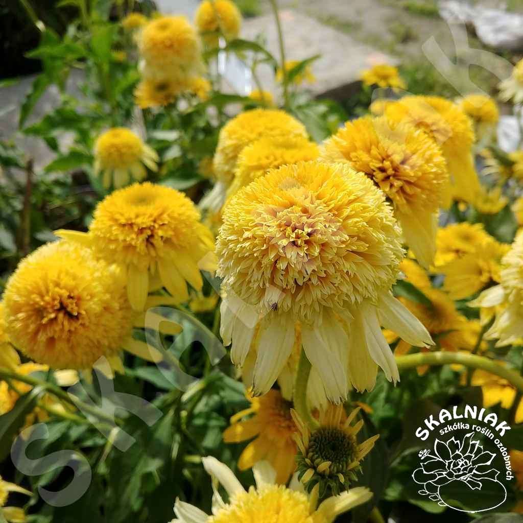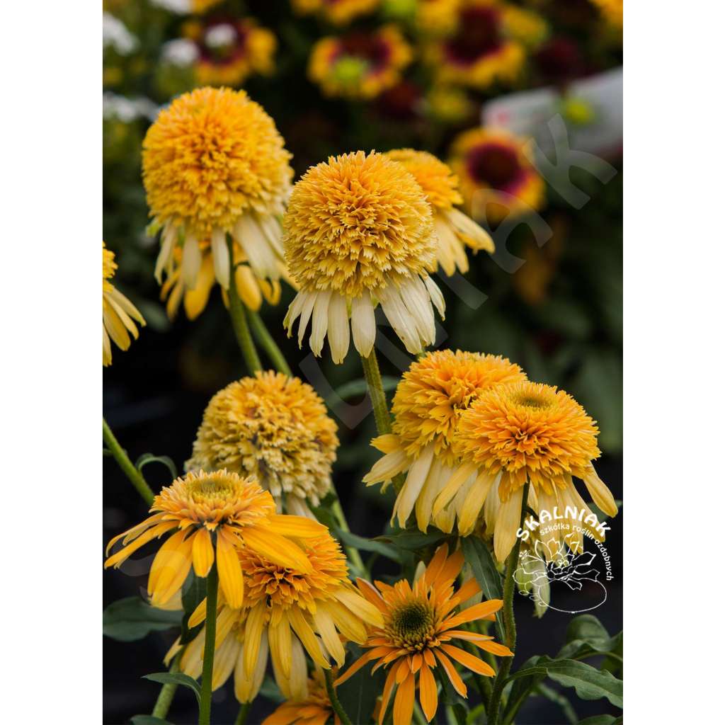 Echinacea purpurea 'Lemon Drop' – to odmiana o pełnych cytrynowożółtych kwiatach. Kwiatostan jest osadzony na pędzie dorastającym do 60 cm wysokości. Gdy nie kwitnie kępa osiąga 30 cm szerokości i 40 cm wysokości. Kwitnie od czerwca do sierpnia.