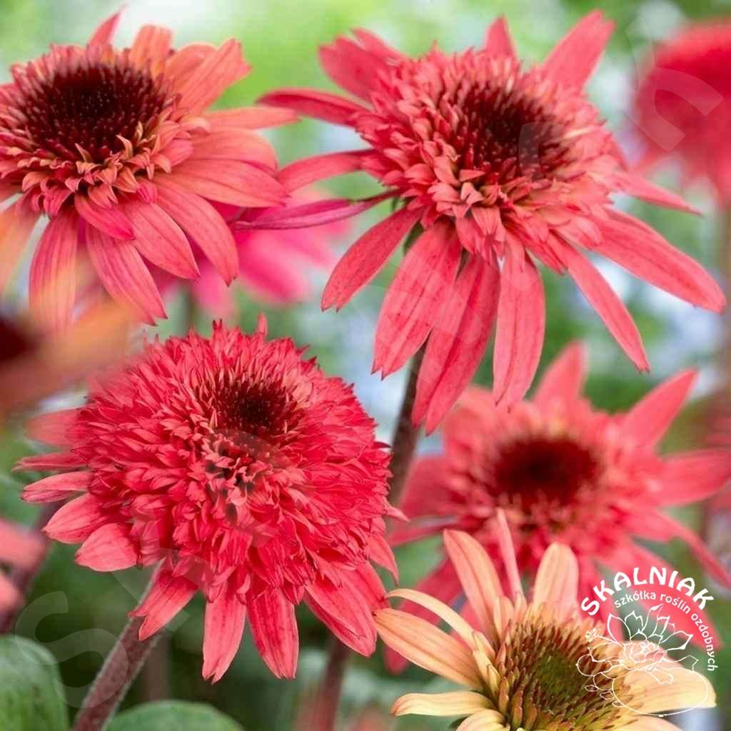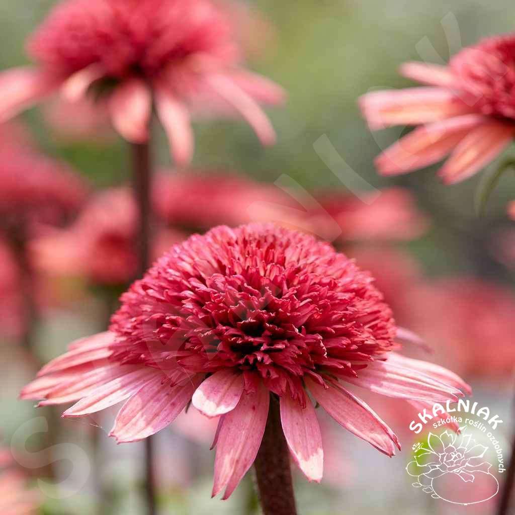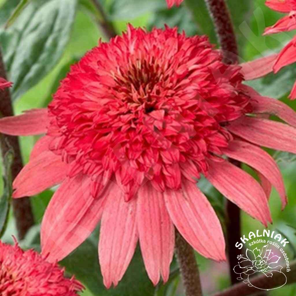 Jeżówka 'Raspberry Truffle' - to odmiana o obfitych pełnych, kwiatach w kolorze malinowym. Kulisty środek otoczony jest opadającymi płatkami. Kwiatostan jest osadzony na ciemnym pędzie dorastającym do 70 cm wysokości. Gdy nie kwitnie kępa osiąga 60 cm szerokości i 50 cm wysokości. Kwitnie od VII do IX. Liście są zielone, szorstkie, pokryte krótkimi włoskami. Jest to bylina łatwa w pielęgnacji, dobrze zimująca w naszych warunkach klimatycznych. Do dobrego wzrostu potrzebuje gleby próchnicznej, lekko wilgotnej.