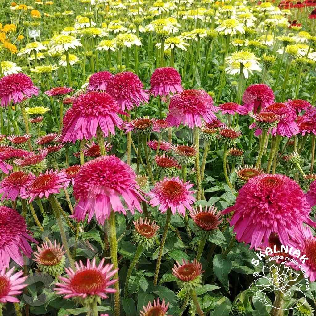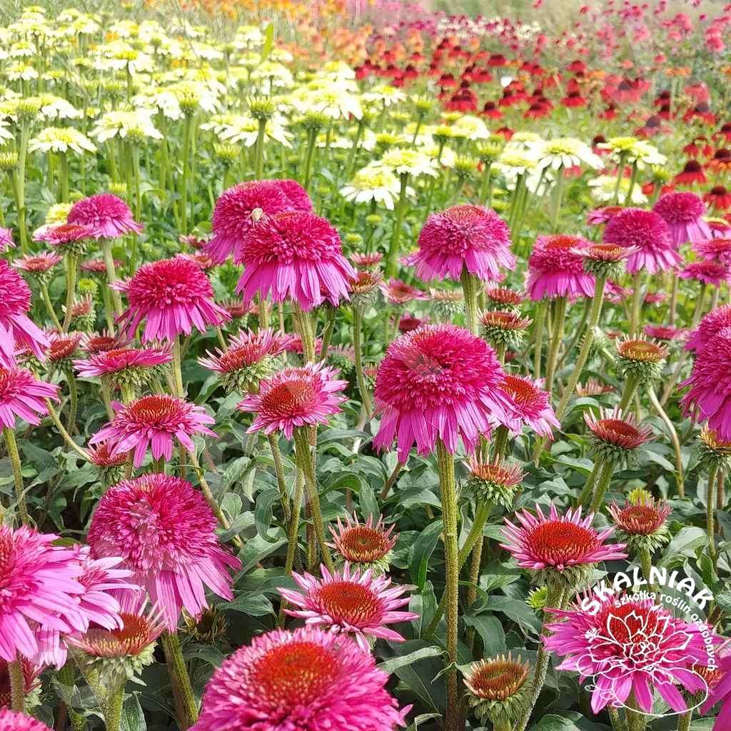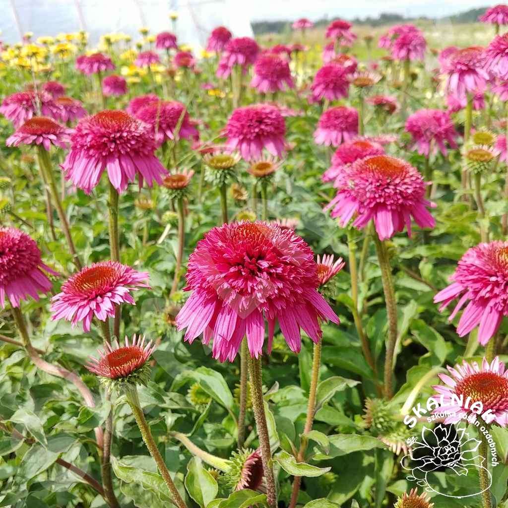 Kolor i wielkość jej kwiatu przyciąga nasze spojrzenie już z daleka. Pięknie wygląda w dużej grupie, do której przylatują latem motyle. Polecana i ciesząca się dużym zainteresowaniem jeżówka pasuje do wielu typów rabat np. naturalistycznych. Jeżówki bardzo dobrze wyglądają na rabatach z innymi bylinami, kwitnącymi w podobnym terminie, np. ostróżkami, liliowcami, pysznogłówkami, astrami krzaczastymi, trytomą, kupidunkiem, lnem, werbeną, ostróżką, gaurą, czy rudbekią. Coraz częściej możemy ją zauważyć na w obsadzeniach miejskich - na rabatach w połączeniu z ozdobnymi trawami, np. miskantami, rozplenicami, śmiałkiem, kostrzewą, czy prosem.