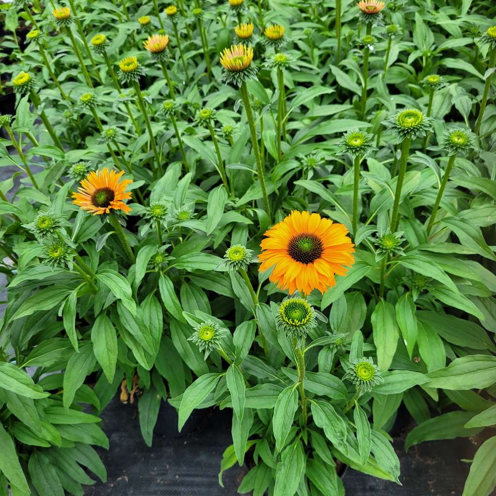 Jeżówka purpurowa 'Sunseekers Mineola' to niezwykle efektowna, kępiasta bylina, która z pewnością wzbogaci Twój ogród. Charakteryzuje się dużymi, pomarańczowymi, podwójnymi kwiatami, a jej pędy dorastają do 40 cm wysokości. Ta kompaktowa odmiana idealnie nadaje się do obsadzania frontów rabat, dodając świeżości i koloru od czerwca do września.