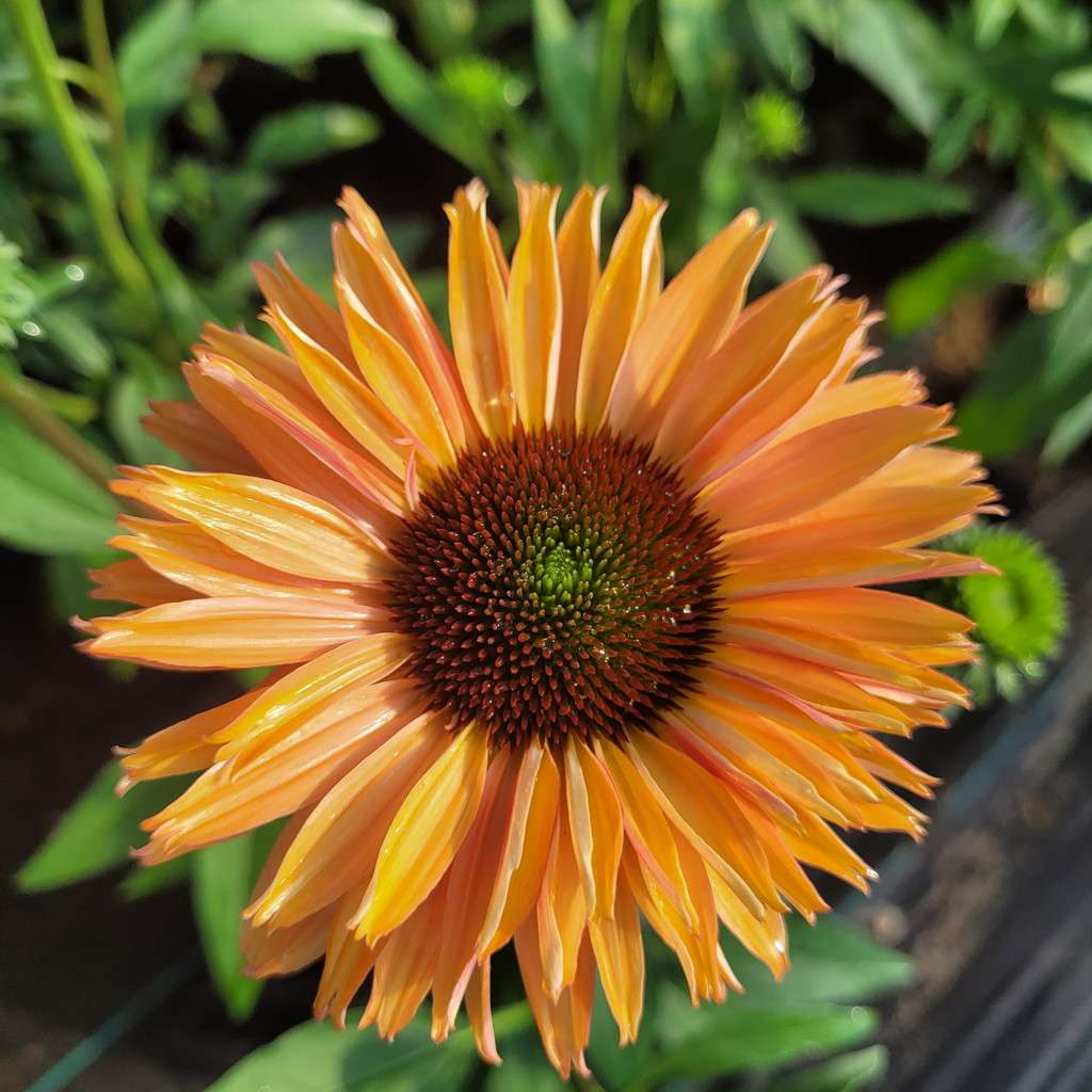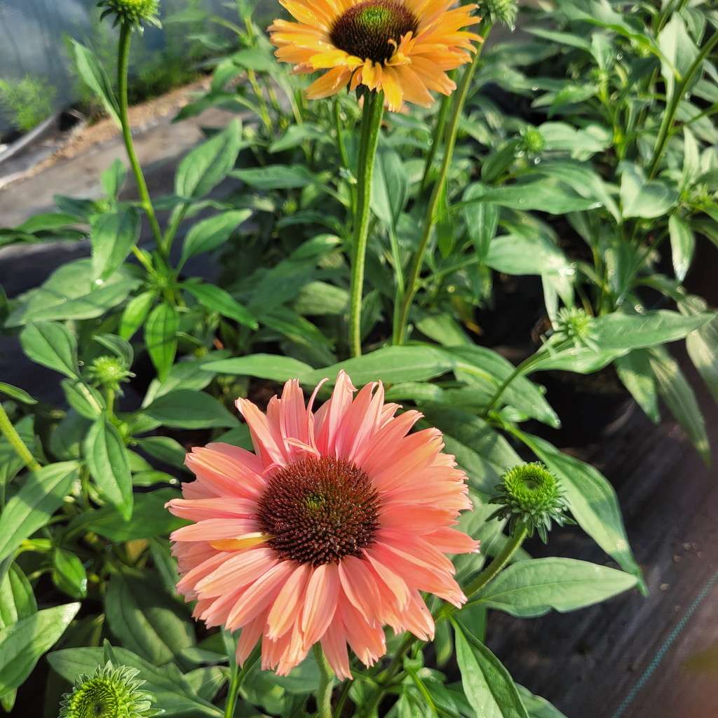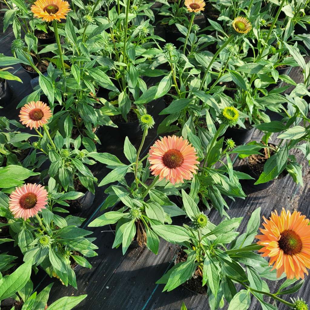 Echinacea purpurea 'Sunseekers Rainbow' to niezwykle efektowna, kępiasta bylina, która z pewnością wzbogaci Twój ogród. Charakteryzuje się dużymi, wielobarwnymi podwójnymi kwiatami w kolorze różowopomarańczowym. Jej pędy dorastają do 40 cm wysokości w trakcie kwitnienia. Ta kompaktowa odmiana idealnie nadaje się do obsadzania frontów rabat, dodając świeżości i koloru od czerwca do września.