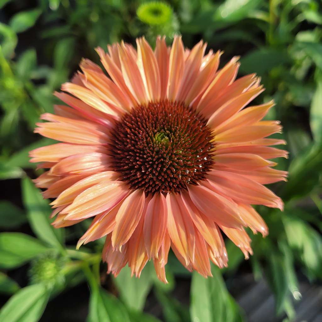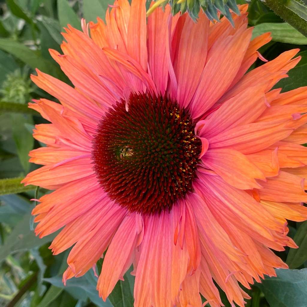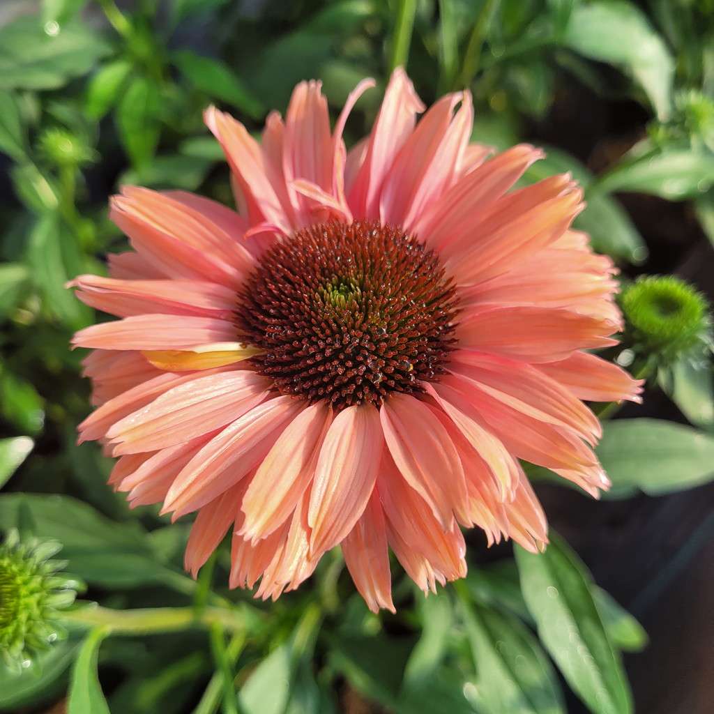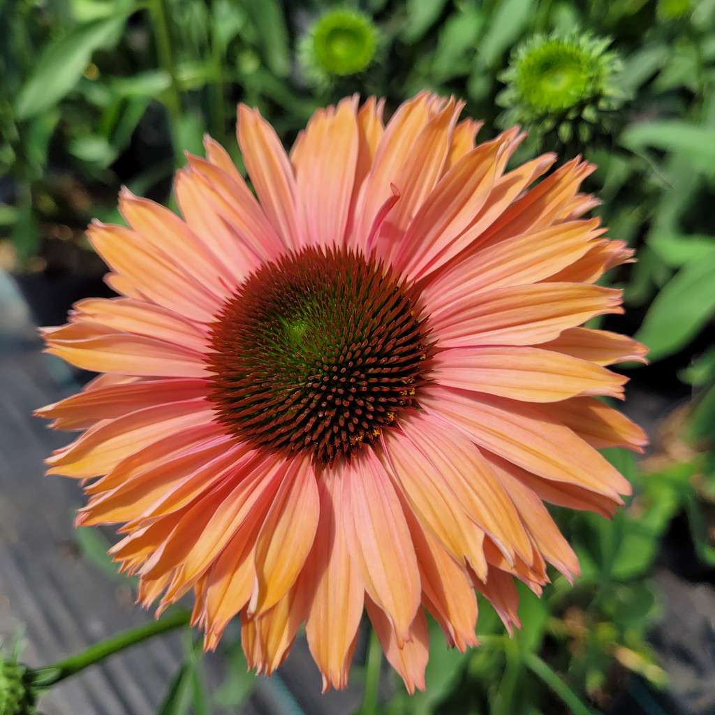 Echinacea purpurea 'Sunseekers Rainbow' to niezwykle efektowna, kępiasta bylina, która z pewnością wzbogaci Twój ogród. Charakteryzuje się dużymi, wielobarwnymi podwójnymi kwiatami w kolorze różowopomarańczowym. Jej pędy dorastają do 40 cm wysokości w trakcie kwitnienia. Ta kompaktowa odmiana idealnie nadaje się do obsadzania frontów rabat, dodając świeżości i koloru od czerwca do września.