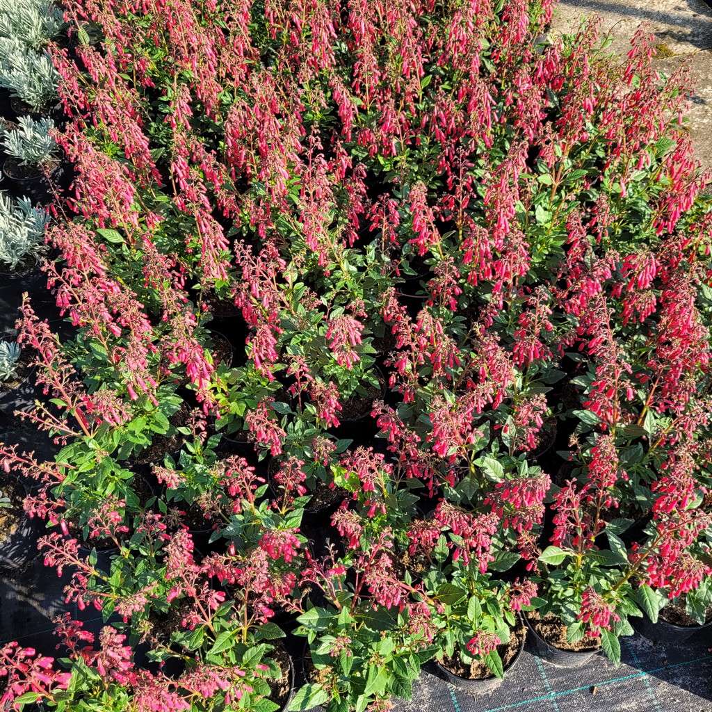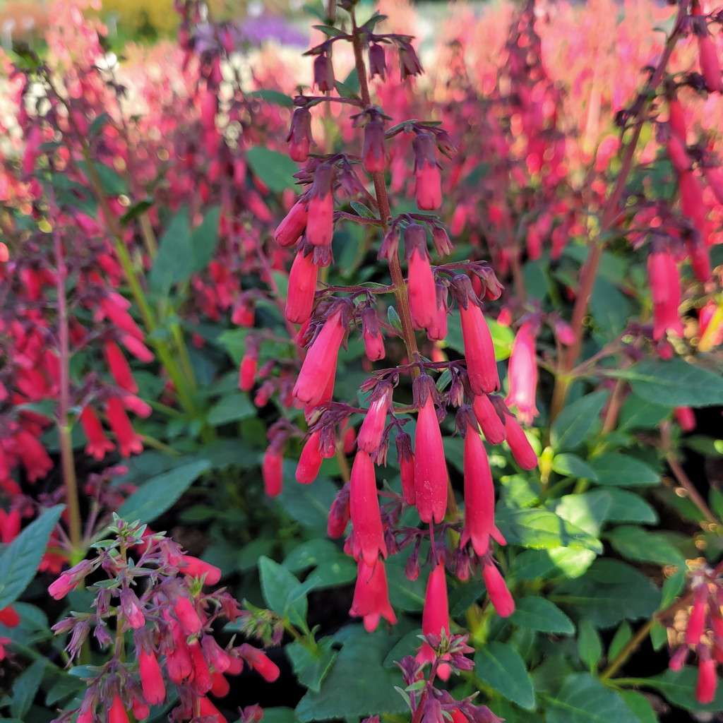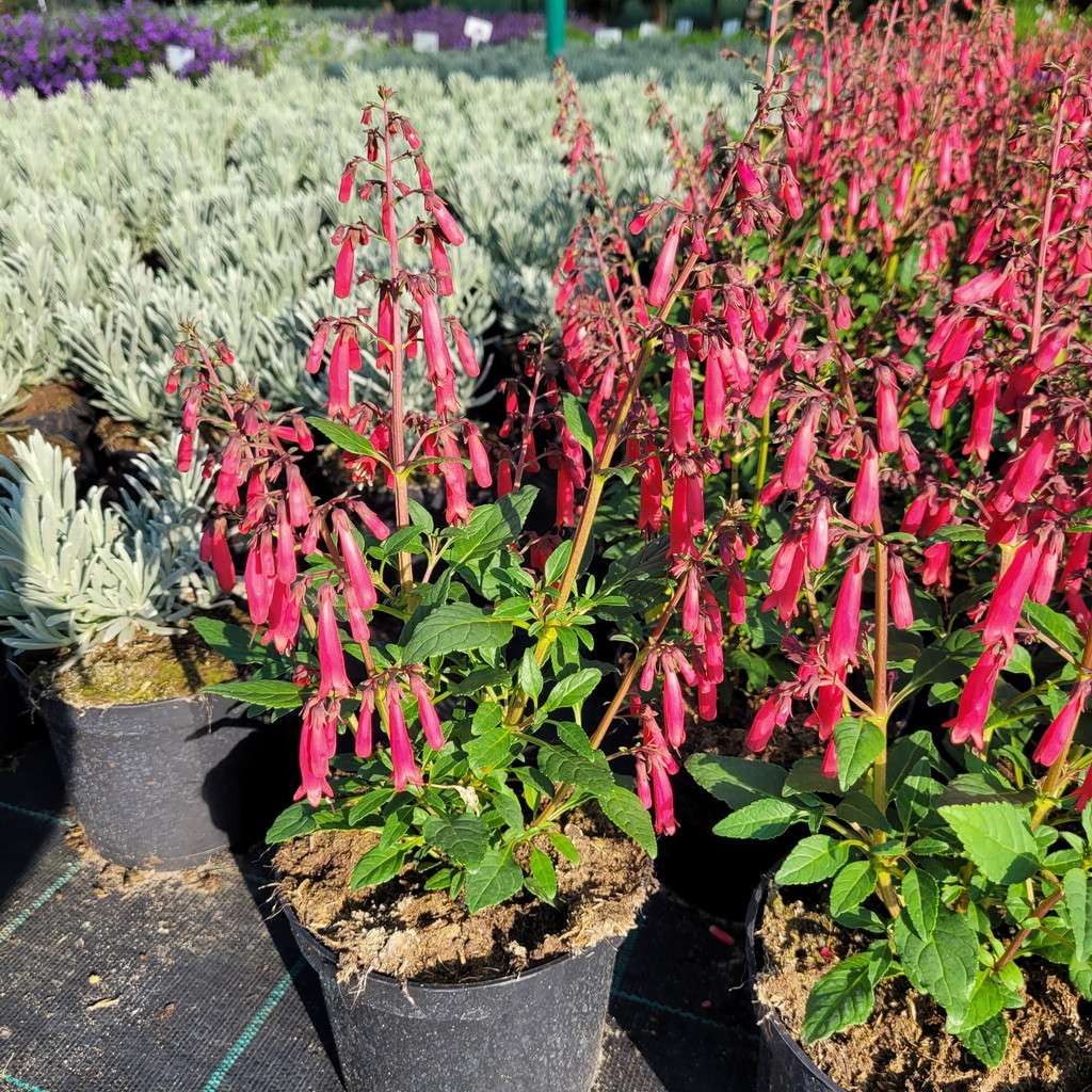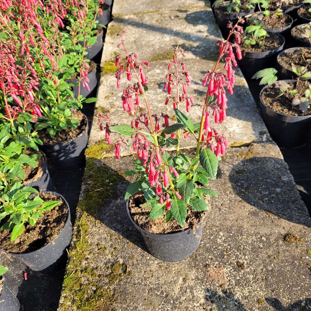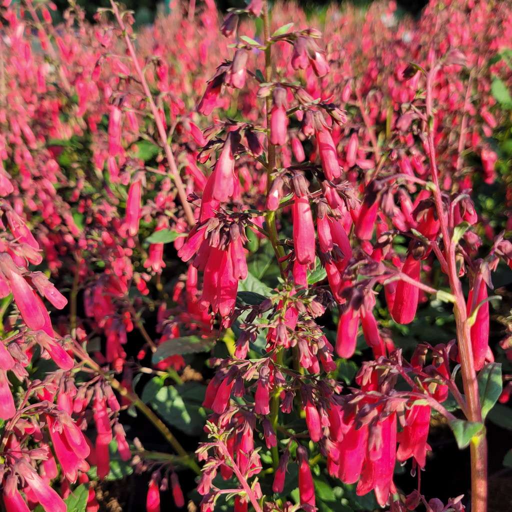 Tworzy zwartą kępę zielonych liści, a w czasie kwitnienia pojawiają się liczne, czerwone/karminowe kwiaty o rurkowatym kształcie, z jaśniejszym gardłem. Kwitnie latem, od lipca do września (VII-IX). Kępa dorasta zwykle do około 40 cm, a kwiatostany pojawiają się wyżej – do około 50 cm. Roślina rozrasta się na mniej więcej 30 cm szerokości.