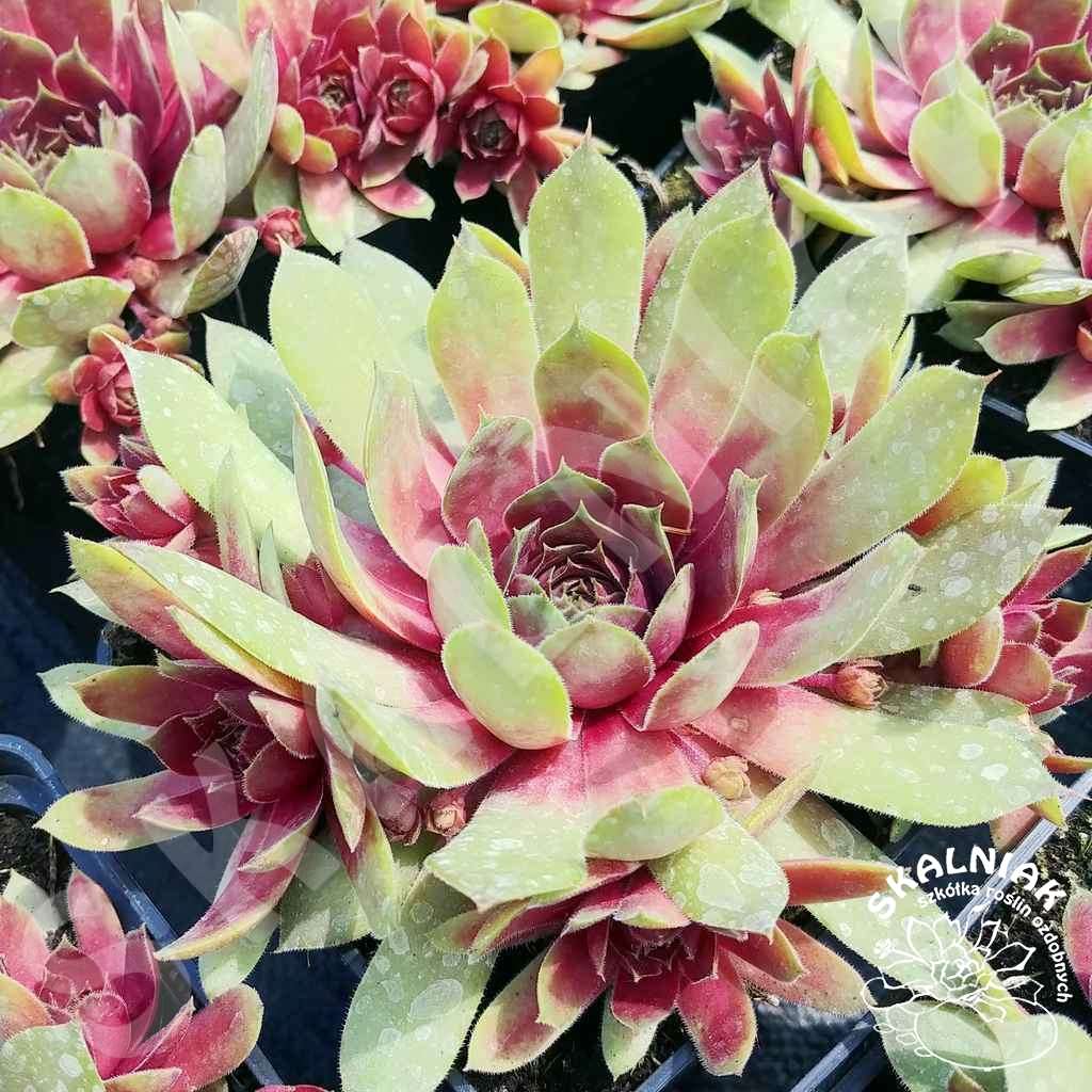Rojnik 'BigSam Pink Pomelo' - jest to wieloletnia bylina gruboszowata. Liście układają się w rozetę. Odmiany BigSam osiągają duże szerokości rozet - nawet do 15 cm, przy wysokości ok 5 cm. Wiosną i jesienią możemy zaobserować dużą zmienność w kolorze liści. Na zmianę koloru rozety liściowej wpływa ilość światła oraz ilość składników pokarmowych w podłożu.