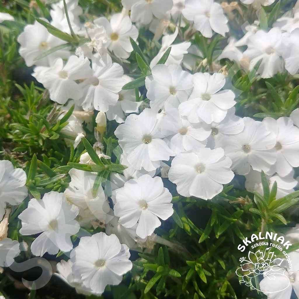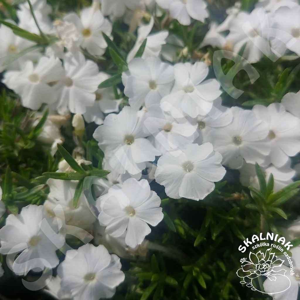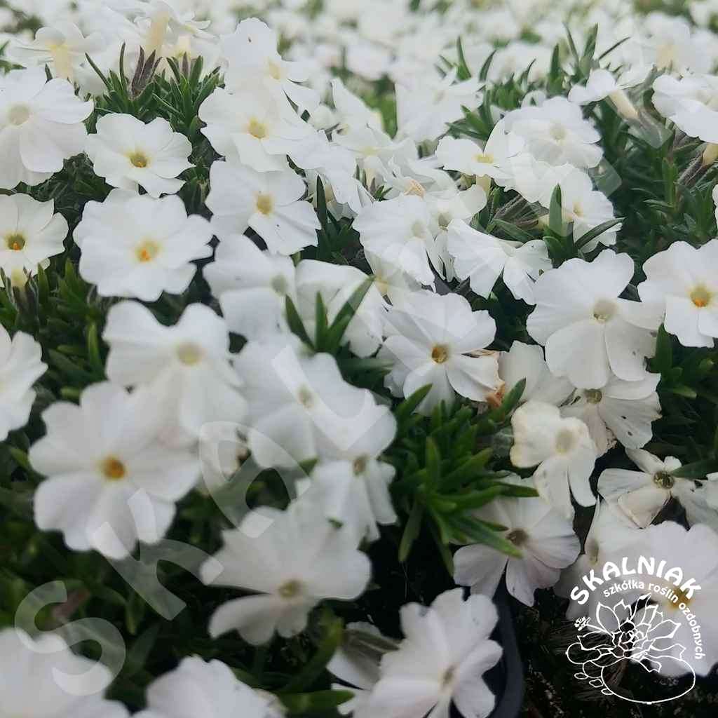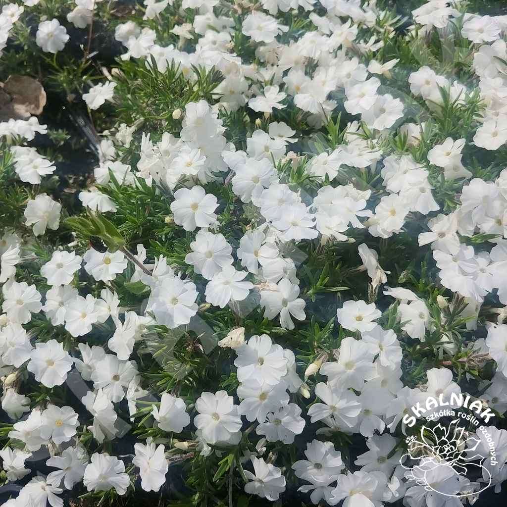 Floks (Płomyk) Douglasa 'White Delight' - to wyjątkowa bylina dywanowa. Tworzy piękne białe kobierce, złożone z licznych kwiatów, kwitnących od IV do VI. Floks jest rośliną bardzo łatwą w uprawie. Dobrze rośnie w ziemi ogrodowej, lubi słońce i nie wymaga częstego podlewania. Wraz z innymi odmianami floksów potrafi stworzyć cudowną paletę barw zasłaniając puste miejsca na rabacie. Płomyk Douglasa jest jedną z pięciu najważniejszych tzw. „bylin na skalniak”. Doskonale sprawdza się przy obsadzeniach skarp, murków i pochyłości, dzięki mocnemu systemowi korzeniowemu, który wiąże podłoże. Często wykorzystuje się go do obsadzenia obwódek rabatowych - jako ich wykończenie. W warunkach klimatu polskiego świetnie znosi mróz i dłużej trwającą suszę. Floks świetnie wygląda na rabacie z takimi roślinami jak: żagwiny, goździki, macierzanki, smagliczka, rojniki i rozchodniki.