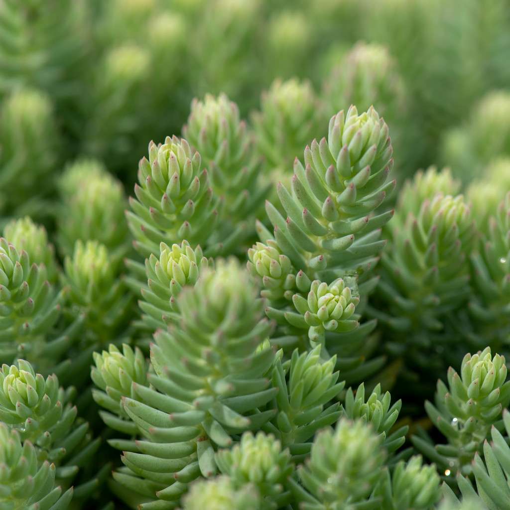 Rozchodnik ościsty 'Blue Spruce' (Sedum reflexum - Sedum rupestre) - to wieloletnia bylina gruboszowata, zadarniająca, dorastająca do wysokości 20 cm. Rozchodnik ościsty 'Blue Spruce' charakteryzuje się mięsistymi, niebieskosrebrnymi liśćmi w formie drobnych igiełek (im bardziej słoneczne jest stanowisko tym są one bardziej srebrne). Rozchodnik ościsty kwitnie od czerwca do września dużymi żółtymi baldachogronami.