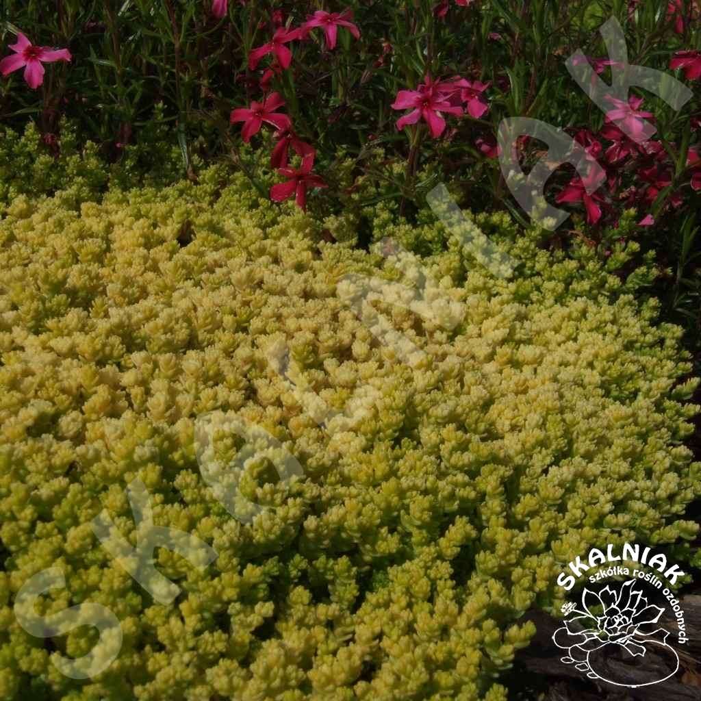 Rozchodnik ostry 'Aurea' - to wieloletnia bylina gruboszowata, płożąca dorastająca do 5 cm wysokości. Rozchodnik ostry charakteryzuje się mięsistymi liśćmi w formie drobnych igiełek koloru złotożółtego (wiosną i po nawożeniu listki mogą przybrać kolor zielony). Rozchodnik ostry 'Aureum' kwitnie na przełomie wiosny i lata, małymi żółtymi kwiatkami. Rozchodnik ościsty kwitnie na przełomie wiosny i lata, dużymi żółtymi baldachogronami. Rozchodniki doskonale zadarniają duże piaszczyste, słoneczne powierzchnie. Wszystkie rozchodniki są bardzo łatwe w uprawie - najlepiej udają się na miejscach słonecznych, piaszczystych, suchych. Rozchodniki podobnie jak rojniki wyjątkowo dobrze znoszą mróz. Sedum jest "obowiązkową" rośliną na skalniaki, skarpy, do ogrodów górskich, słoneczne rabaty. Bylina ta fantastycznie wygląda wśród kamieni i żwirów, w szczelinach murków i kaskad. Rozchodniki najlepiej wyglądają w zestawieniu z innymi odmianami rojników lub rozchodnikami czy roślinami niskimi zielnymi, słońcolubnymi np. floksami szydlastymi, macierzankami, goździkami, zawciągiem, rogownicą, zawciągiem, rdestem, smagliczką czy żagwinem. Ostatnio coraz częściej widzimy je w obsadzeniach płaskich donic tarasowych, czy jako wypełniacz między płytkami wokół ścieżek. Jest to jedna z odmian polecanych do zadarniania zielonych dachów. Jest to jedna z najpopularniejszych odmian rozchodnika.