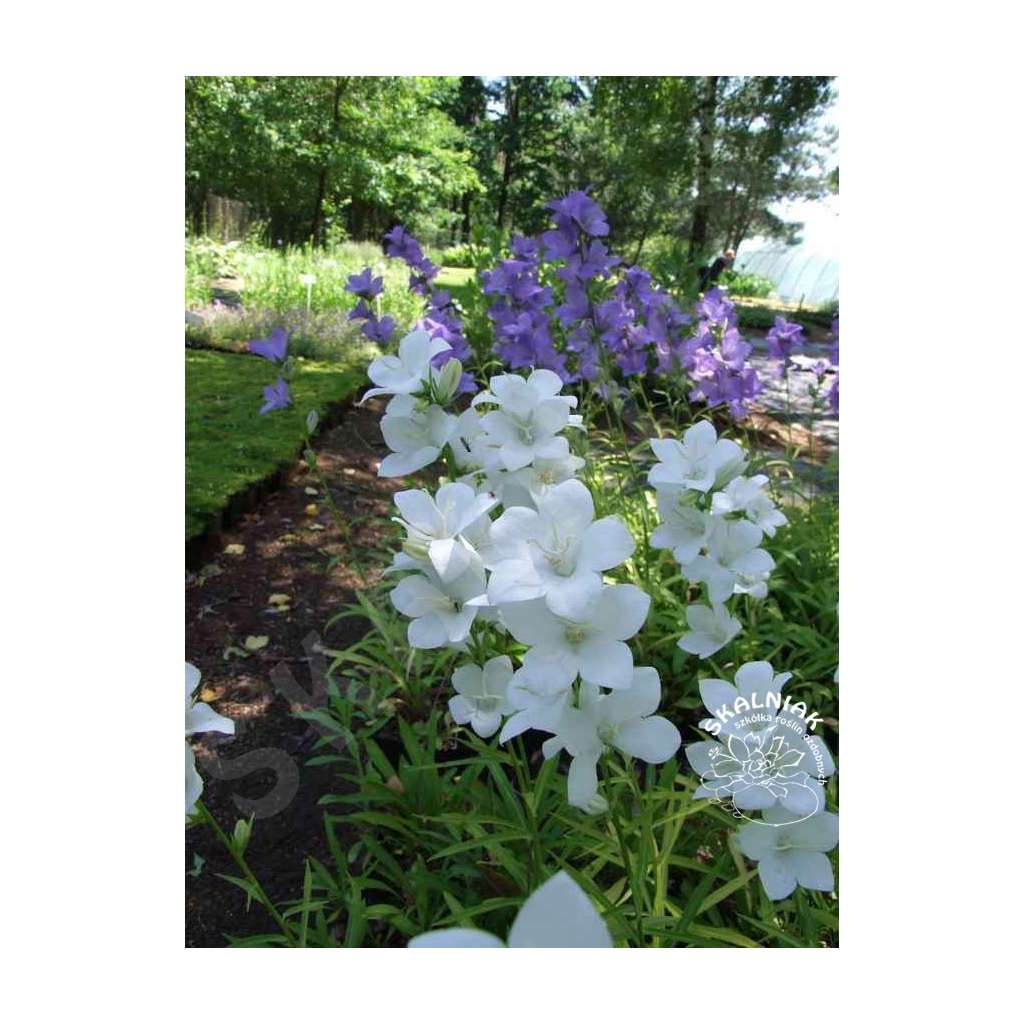Dzwonek brzoskwiniolistny 'White' to wieloletnia bylina średniego wzrostu. Kwitnąca latem roślina ma białe, duże dzwonki, zwisające ku dołowi. Gdy nie kwitnie liście wyrastają na ok 5 cm od ziemi. Dzwonek brzoskwiniolistny podobnie jak bodziszki jest rośliną uniwersalną i urośnie zarówno w pełnym słońcu jak i w cieniu. Może być wykorzystany do zadarniania większych powierzchni jeśli będziemy sadzić go w grupie. Bardzo ładnie wygląda w mieszance z innymi dzwonkami i roślinami poszycia łąkowo-leśnego, np . dzwonkami karpackimi, dzwonkiem kropkowanym, paprociami, dąbrówką rozłogową, konwaliami, czy brunnerą. Dzwonek brzoskwiniolistny polecany jest do tworzenia ogrodów w stylu: wiejskim, naturalistycznym, angielskim, leśnym, górskim. Można go spotkać na łąkach kwietnych i na zielonych dachach.