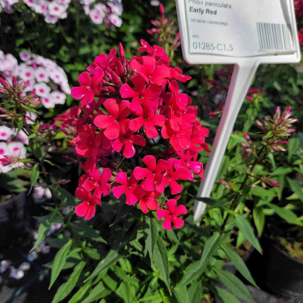 Floks wiechowaty 'Early Red' to kompaktowa odmiana Phlox paniculata, tworząca niskie, gęste kępy z ciemnoróżowymi (prawie czerwonymi) kwiatami. Jako bylina wieloletnia świetnie sprawdza się na słonecznych rabatach i w pojemnikach, wprowadzając kolor na rabatę latem. Sadzonki dostępne w naszym sklepie internetowym można sadzić od wiosny do jesieni, w zależności od pogody i warunków w ogrodzie.