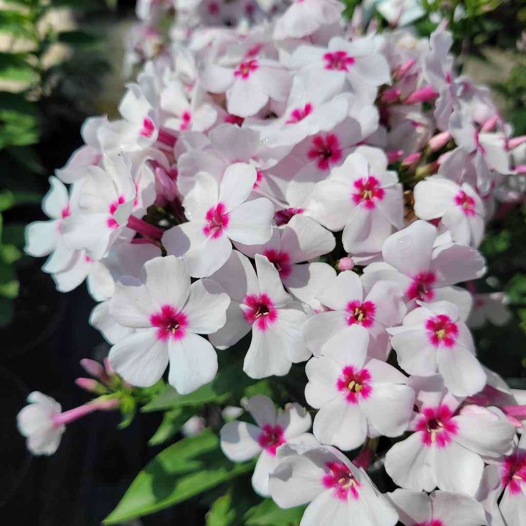 Floks wiechowaty 'Flame White Eye' to bylina, kwitnąca od lipca do września. Floks wiechowaty 'Flame White Eye' ma pachnący kwiatostan biały z fioletowym oczkiem. Jest odmianą niższą - osiąga ok. 30 cm w trakcie kwitnienia. Jego piękne duże kwiatostany, podczas kwitnienia wydzielają słodki zapach zwabiający między innymi motyle. Floks będzie także wspaniale współgrać z innymi bylinami np. w rabatach naturalistycznych, tworząc ciekawe wyróżniające się kolorowe plamy. Floks wiechowaty dobrze wygląda w zestawieniu z takimi roślinami jak np.: odętka wirginijska, rudbekia, złocienie, len, firletki, pysznogłówka, rozchodniki okazałe, astry krzaczaste. Floks wiechowaty to jedna z ważniejszych pozycji w ogrodach w tylu wiejskim, czy angielskim. Floksa polecam każdej osobie, ze względu na jego małe wymagania i łatwość w pielęgnacji.