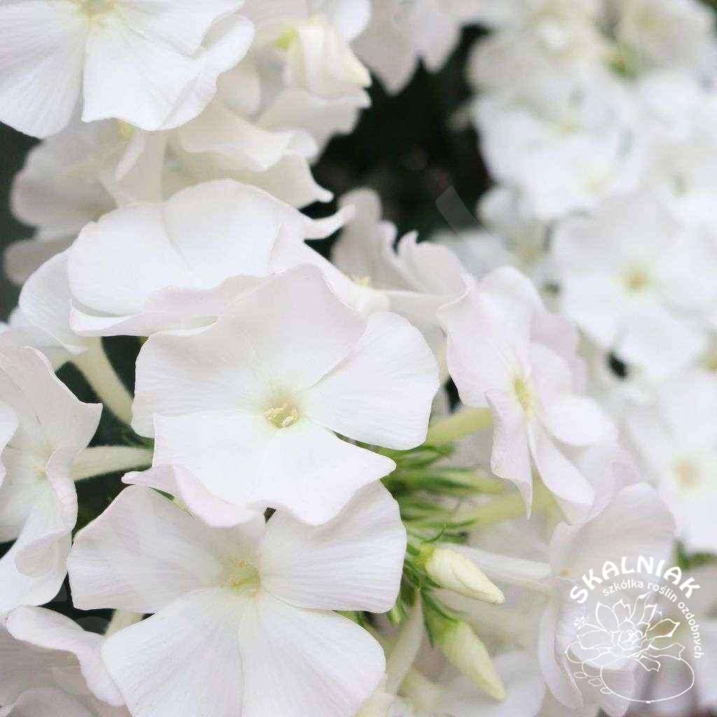 Floks wiechowaty 'Flame White Imp.' to bylina, kwitnąca od lipca do września. Floks wiechowaty 'Flame White Imp.' ma biały kwiatostan. Jego piękne duże kwiatostany, podczas kwitnienia wydzielają słodki zapach zwabiający między innymi motyle. Jest odmianą, która osiąga ok. 50 cm w trakcie kwitnienia. Kwiaty są osadzone na sztywnych pędach, które po przekwitnięciu należy usuwać aby wydłużyć okres kwitnienia.