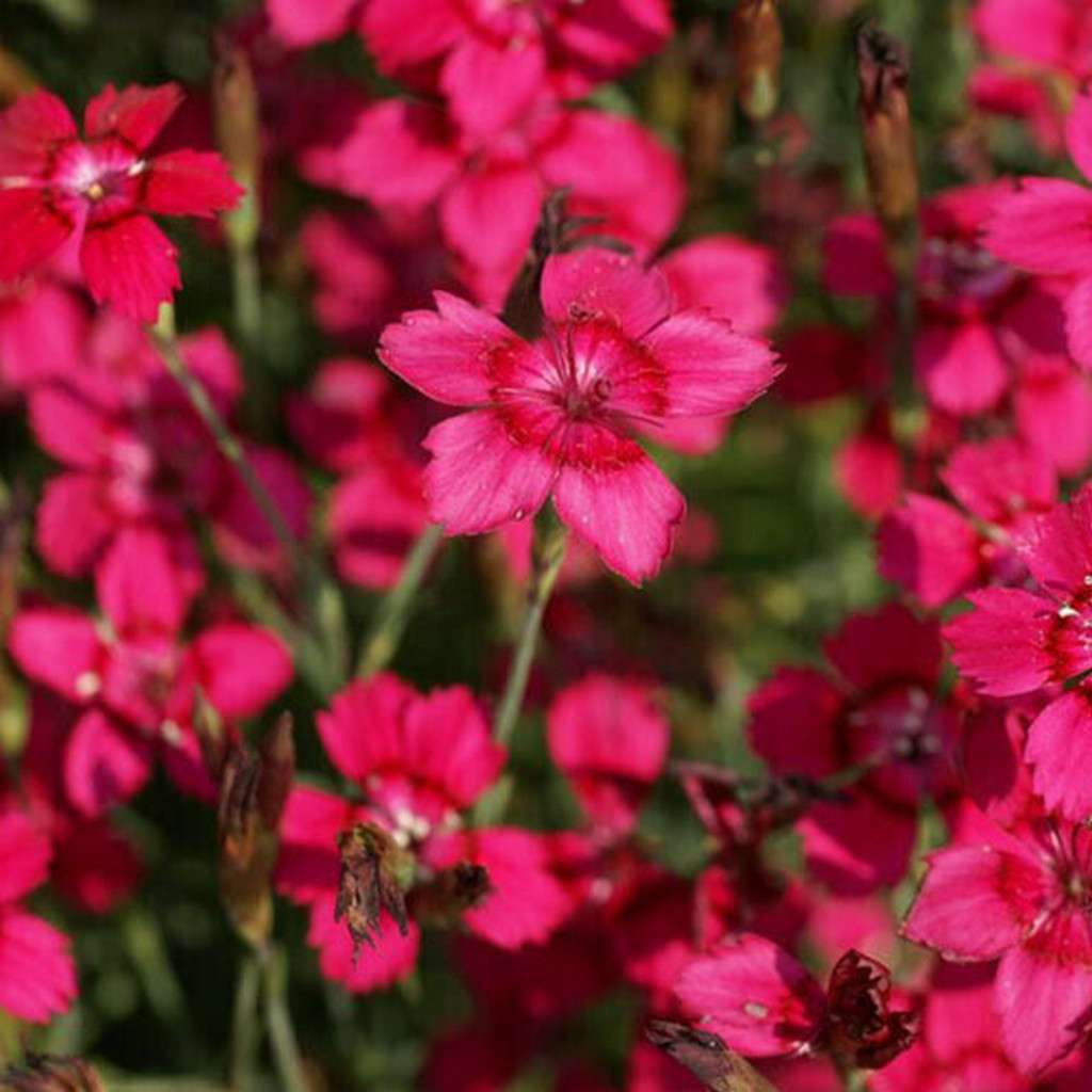 Goździk kropkowany 'Flashing Light' - jest jedną z najtrwalszych i najładniejszych bylin zadarniająco-dywanowych, która rośnie w pełnym słońcu. Goździk ten tworzy zwarte, niskie kępy zielonych liści. Od V do VI kwitnie licznymi kwiatami. Kwiaty te są niepełne koloru ciemnoróżowego. Polecamy go do nasadzeń skalnych i rabat bylinowych tworzonych na pełnym słońcu. Nadaje się do nasadzeń w donicach i różnych pojemnikach. Bardzo dobrze sprawdza się na przodzie rabaty jako jej wykończenie lub obwódka. Gatunek ten charakteryzuje się karminowymi (niepełnymi) kwiatami o bardzo ładnym zapachu, które rosną na krótkiej łodyżce. Goździki rosną nawet na bardzo słabej ziemi, znoszą okresowy brak wody i są bardzo odporne na mróz, dlatego polecana jest dla osób zaczynających swoją przygodę z ogrodnictwem. Goździki doskonale komponują się z innymi bylinami poduszkowymi np.: macierzankami, floksami szydlastymi, żagwinami, posłonkami, rozchodnikami i rojnikami. Polecane są do każdego typu ogrodu - zarówno nowoczesnego, jak i wiejskiego.