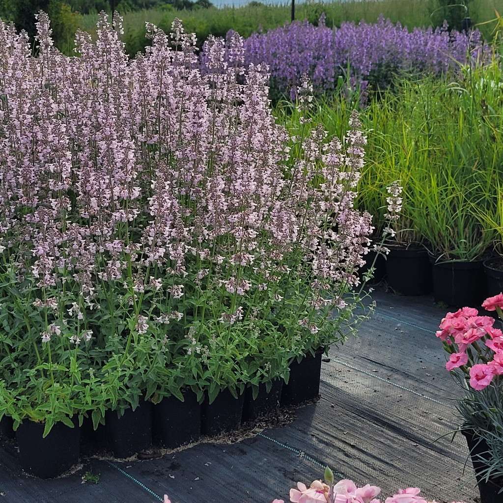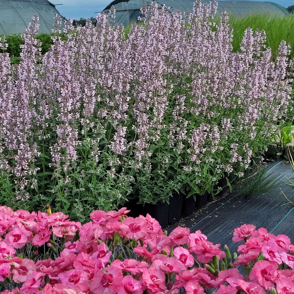 Kocimiętka groniasta 'Amelia' – to piękna bylina kwitnąca bardzo długo, bo aż od VI do IX. Jej kwiaty są koloru różowego. Kocimiętka groniasta 'Amelia' dorastająca w trakcie kwitnienia do 60 cm i osiągaja szerokość 40 cm. Kocimiętka groniasta 'Amelia' ma pokrój rozłożysty. Po przekwitnięciu warto ją przyciąć, dzięki czemu zagęści się i powtórzy kwitnienie. Kocimiętka to nie tylko cenna roślina, która rośnie w pełnym słońcu ale jest również ziołem. Wytwarza ona olejki eteryczne, które mają przyjemny miętowy zapach. Kocimiętka jest bardzo łatwa w uprawie, dobrze znosi zimę naszego klimatu. Polecamy ją do każdego typu ogrodu, a także do nasadzeń doniczkowych np. na balkonach. Kocimiętka sprawdza się doskonale na mocno nasłonecznionych rabatach bylinowych oraz skalniakach, a także do podsadzenia drzew i krzewów, np. jako wypełnienie między nimi. Bylina ta sprawdza się też jako roślina obwódkowa i na obrzeża oczek wodnych. Byliny tej nie powinno zabraknąć w ogrodach w stylu naturalistycznym, angielskim czy wiejskim. Kocimiętka ładnie skomponuje się z takimi bylinami jak: macierzanki, goździki, żurawki, czy floksy szydlaste.