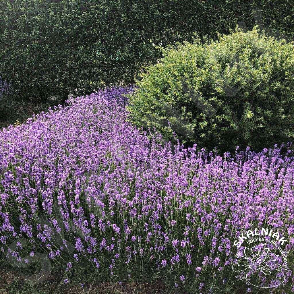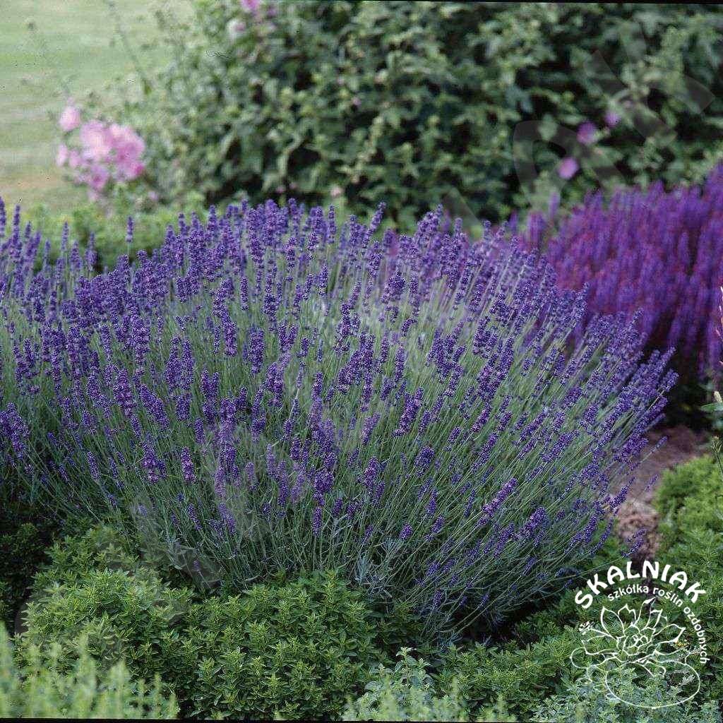 Lawenda wąskolistna (lekarska) 'Hidcote' jest krzewinką nie tylko pięknie kwitnącą, ale również o cudownym charakterystycznym zapachu. Lawenda w odmianie 'Hidcote' kwitnie na ciemnolawendowy kolor od VI-IX. W trakcie kwitnienia osiąga ok 30 cm. Na początku wiosny lawenda ma nieco zielonkawe liście, ale pod wpływem słonecznej pogody wybarwiają się one na srebrny kolor. Charakterystyczne dla lawendy jest to, że im cieplejsza pogoda tym intensywniej pachnie. Lawendy lekarskiej nie może zabraknąć w ogrodach, które mają pobudzać zmysły. Lawenda tworzy kulistą formę, którą można zagęścić przez jej cięcie. Ze ściętych gałązek i kwiatów można zrobić susz, który później można wykorzystać w domu np. jako odświeżacz w szafie lub do suchych bukietów. Lawenda, którą posiadamy na szkółce jest jedną z najbardziej odpornych na mróz, dlatego zalecana jest do obsadzeń w polskich warunkach klimatycznych. Lawenda sprawdza się we wszystkich typach obsadzeń - od miejskich po wiejskie. Lawendę można sadzić w pojemnikach balkonowych i na tarasach. Doskonale sprawdza się na skalniakach, rabatach bylinowych, oraz jako wypełnienie między krzewami. Lawenda wąskolistna doskonale się prezentuje jako roślina z przodu rabaty i w jej środku. Lawendę możemy stosować jako roślinę obwódkową, która wyznaczy nam linię w ogrodzie. Ze względu na jej wymagania stanowiskowe - słoneczne, możemy sadzić ją nawet na skalniaku i żwirowych rabatach kwiatowych. Lawenda stanowi bardzo widowiskowe zestawienie z różami, które mają podobny termin kwitnienia. Lawendę polecamy łączyć też z innymi bylinami, np.: macierzankami, floksami, goździkami, szałwią, posłonkami i nachyłkami.