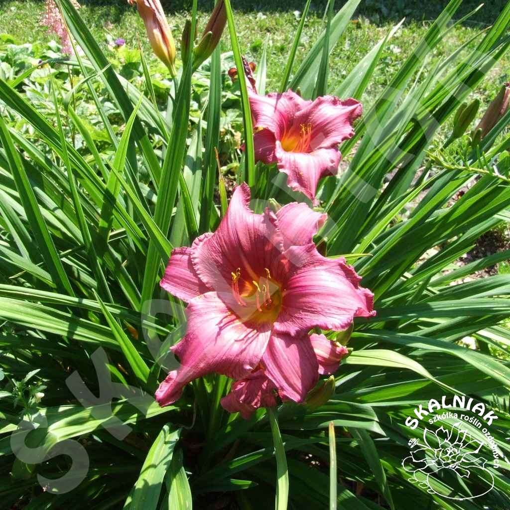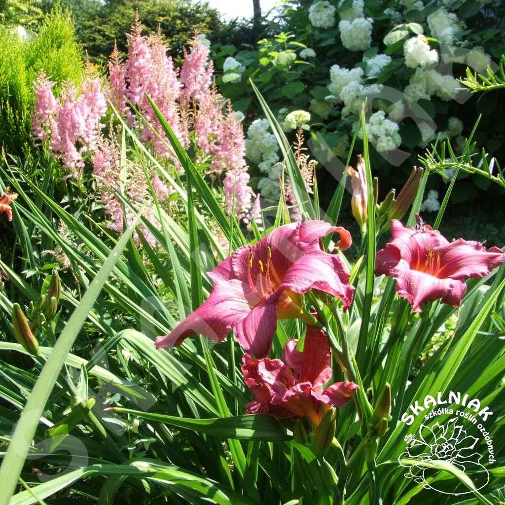 Liliowiec 'Summer Wine' to wieloletnia bylina kępiasta. Kwitnie latem (VII-VIII). W tym okresie pojawiają się duże fioletowo-wiśniowe kwiatostany. Odmiana 'Summer Wine' dorasta do 50 cm wysokości.