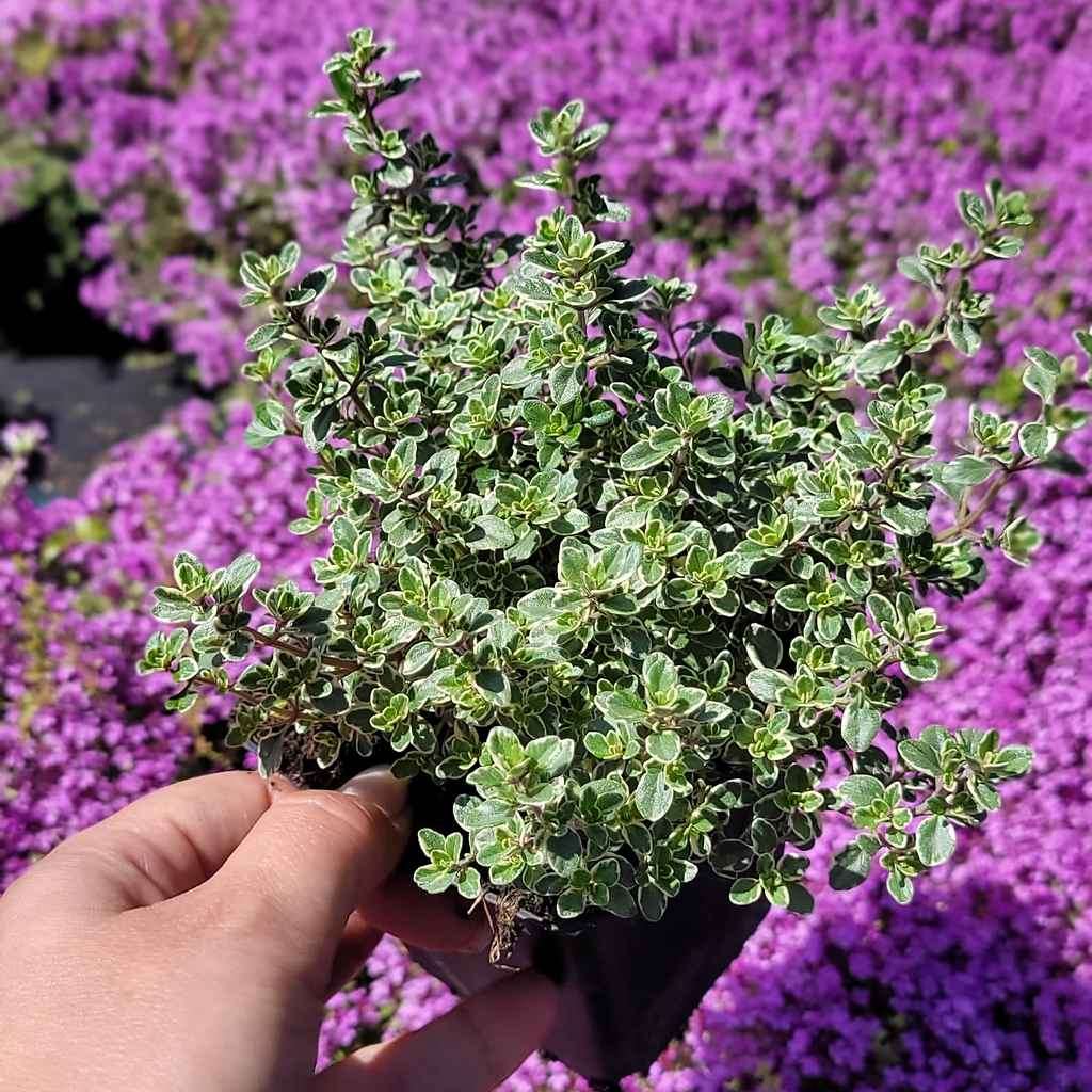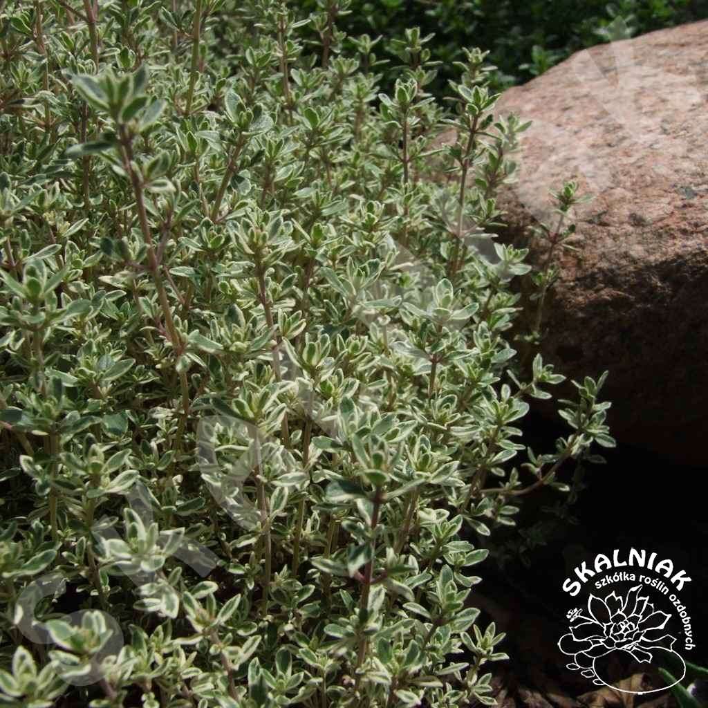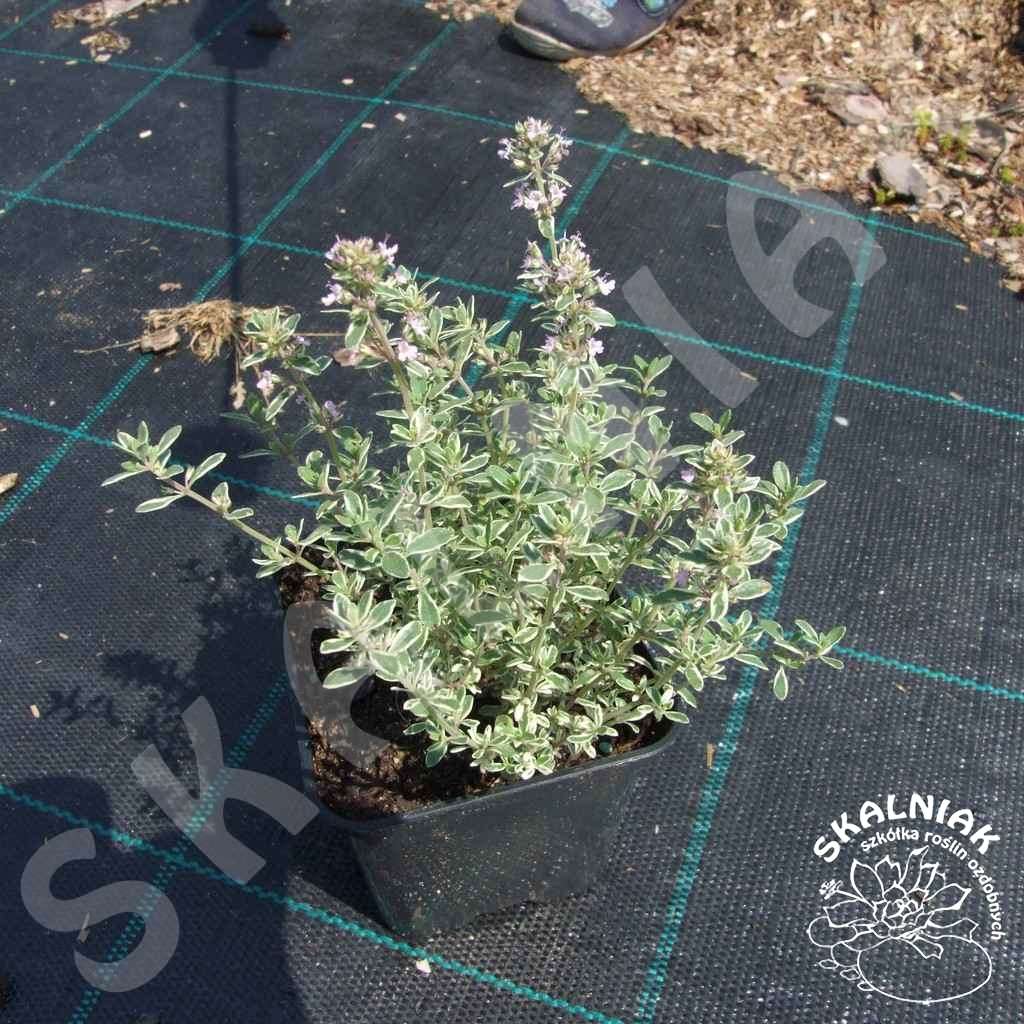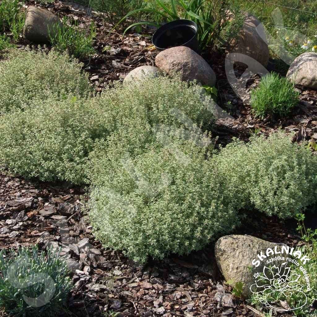Macierzanka cytrynowa 'Silver Queen' - to niska bylina, tworząca poduszkowe kobierce. Macierzanka ta kwitnie ciemnoróżowymi kwiatami na przełomie wiosny i lata. Cała roślina macierzanki 'Silver Queen' ma tymiankowy zapach. Ta odmiana macierzanki ma szarozielone liście z białą obwódką. Macierzanki, podobnie jak goździki, floksy szydlaste i żagwiny cenione są przez ogrodników i wykonawców zieleni, ponieważ są to jedne z najtrwalszych i najładniejszych bylin zadarniająco-dywanowych, rosnących w pełnym słońcu. Wszystkie macierzanki są łatwe w uprawie - rosną dobrze we wspomnianym stanowisku w słonecznym i półcieniu, dobrze się czują posadzone w podłożu przepuszczalnym. W warunkach polskich bardzo dobrze znoszą zimę. Macierzanki bardzo bobrze zadarniają teren tworząc niskie kopułki - dywaniki przypominające kępki mchu. Byliny te ładnie wyglądają na skarpach, murkach, skalniakach, przodach rabat. Można je stosować jako rośliny obwódkowe i jako wykończenie kwietnika. Nadają się do nasadzeń w donicach i różnych pojemnikach. Macierzanki doskonale komponują się z innymi bylinami poduszkowymi np.: goździkami, floksami szydlastymi, żagwinami, posłonkami, rozchodnikami i rojnikami. Polecane są do każdego typu ogrodu - zarówno nowoczesnego, jak i wiejskiego. Macierzankę cytrynową można również polecić do ogrodów ziołowych, gdzie dobrze skomponuje się z szczypiorkiem siedmiolatką, tymiankiem, lebiodką-oregano, lubczykiem, kminkiem i innymi ziołami. Wszystkie produkowane przez nas macierzanki można sadzić na zielonych dachach. Są to byliny polecane dla osób zaczynających swoją przygodę z ogrodnictwem.
