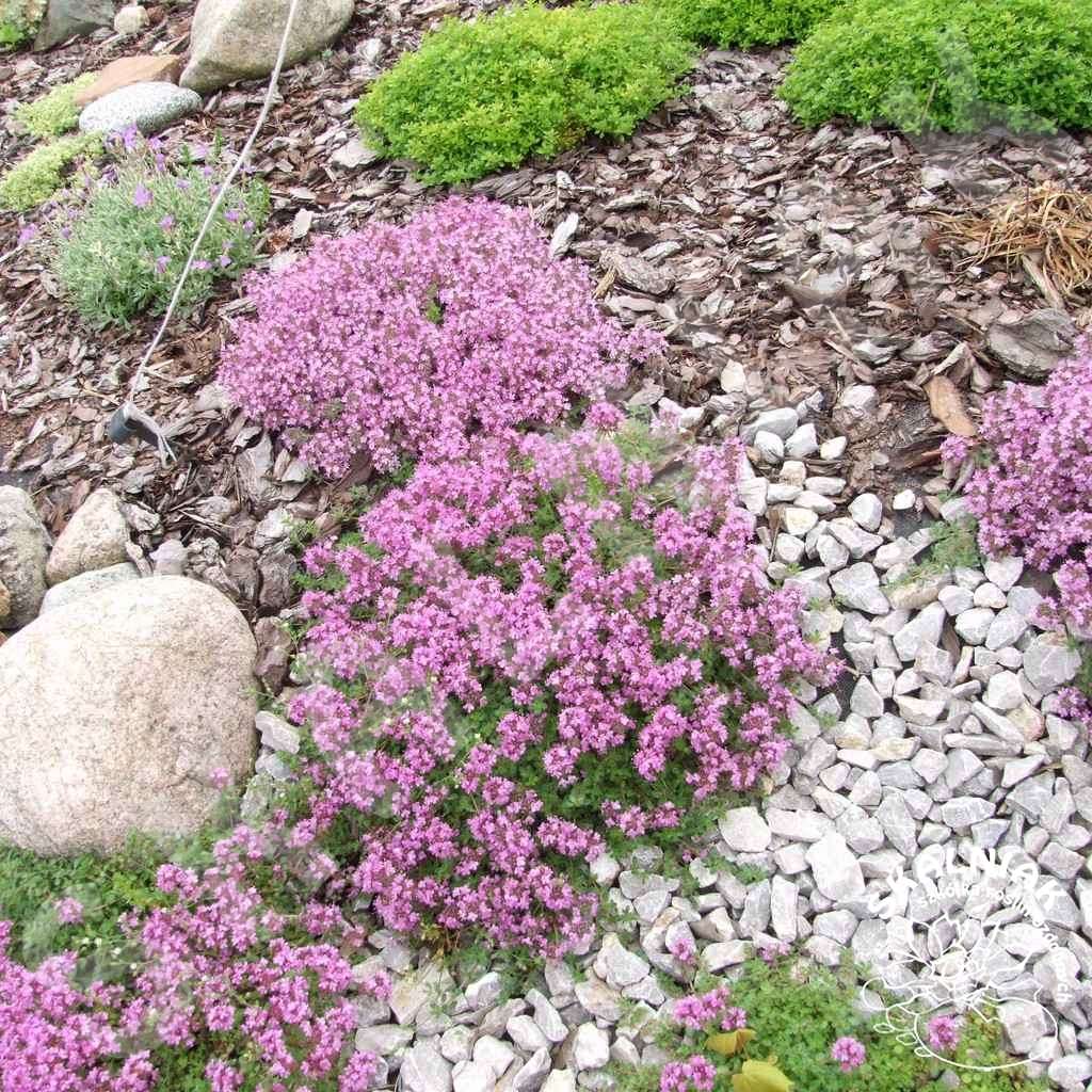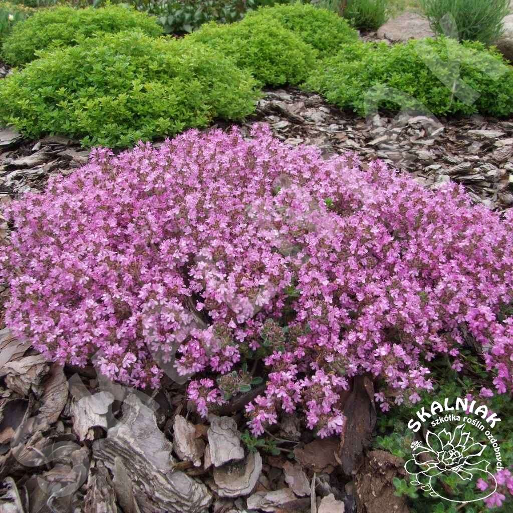 Macierzanka Doerflera 'Bressingham Seedling' - to niska bylina, tworząca niskie kobierce. Macierzanka ta kwitnie ciemnoróżowymi kwiatami na przełomie wiosny i lata. Ta odmiana macierzanki ma ciemnozielone liście. Macierzanki, podobnie jak goździki, floksy szydlaste i żagwiny cenione są przez ogrodników i wykonawców zieleni, ponieważ są to jedne z najtrwalszych i najładniejszych bylin zadarniająco-dywanowych, rosnących w pełnym słońcu. Wszystkie macierzanki są łatwe w uprawie - rosną dobrze we wspomnianym stanowisku w słonecznym i półcieniu, dobrze się czują posadzone w podłożu przepuszczalnym. W warunkach polskich bardzo dobrze znoszą zimę. Macierzanki bardzo bobrze zadarniają teren tworząc niskie kopułki - dywaniki przypominające kępki mchu. Byliny te ładnie wyglądają na skarpach, murkach, skalniakach, przodach rabat. Można je stosować jako rośliny obwódkowe i jako wykończenie kwietnika. Nadają się do nasadzeń w donicach i różnych pojemnikach. Macierzanki doskonale komponują się z innymi bylinami poduszkowymi np.: goździkami, floksami szydlastymi, żagwinami, posłonkami, rozchodnikami i rojnikami. Polecane są do każdego typu ogrodu - zarówno nowoczesnego, jak i wiejskiego. Macierzankę cytrynową można również polecić do ogrodów ziołowych, gdzie dobrze skomponuje się z szczypiorkiem siedmiolatką, tymiankiem, lebiodką-oregano, lubczykiem, kminkiem i innymi ziołami. Wszystkie produkowane przez nas macierzanki można sadzić na zielonych dachach. Są to byliny polecane dla osób zaczynających swoją przygodę z ogrodnictwem.