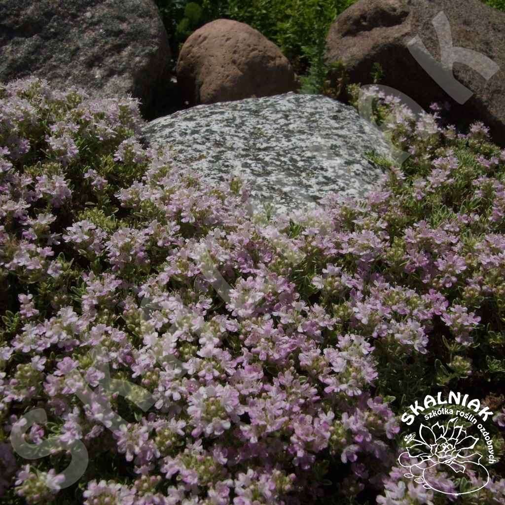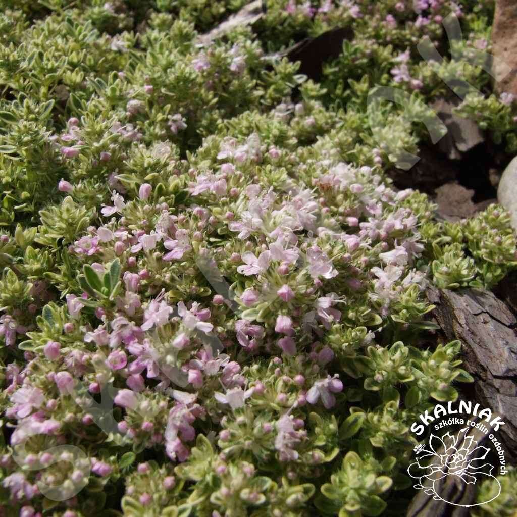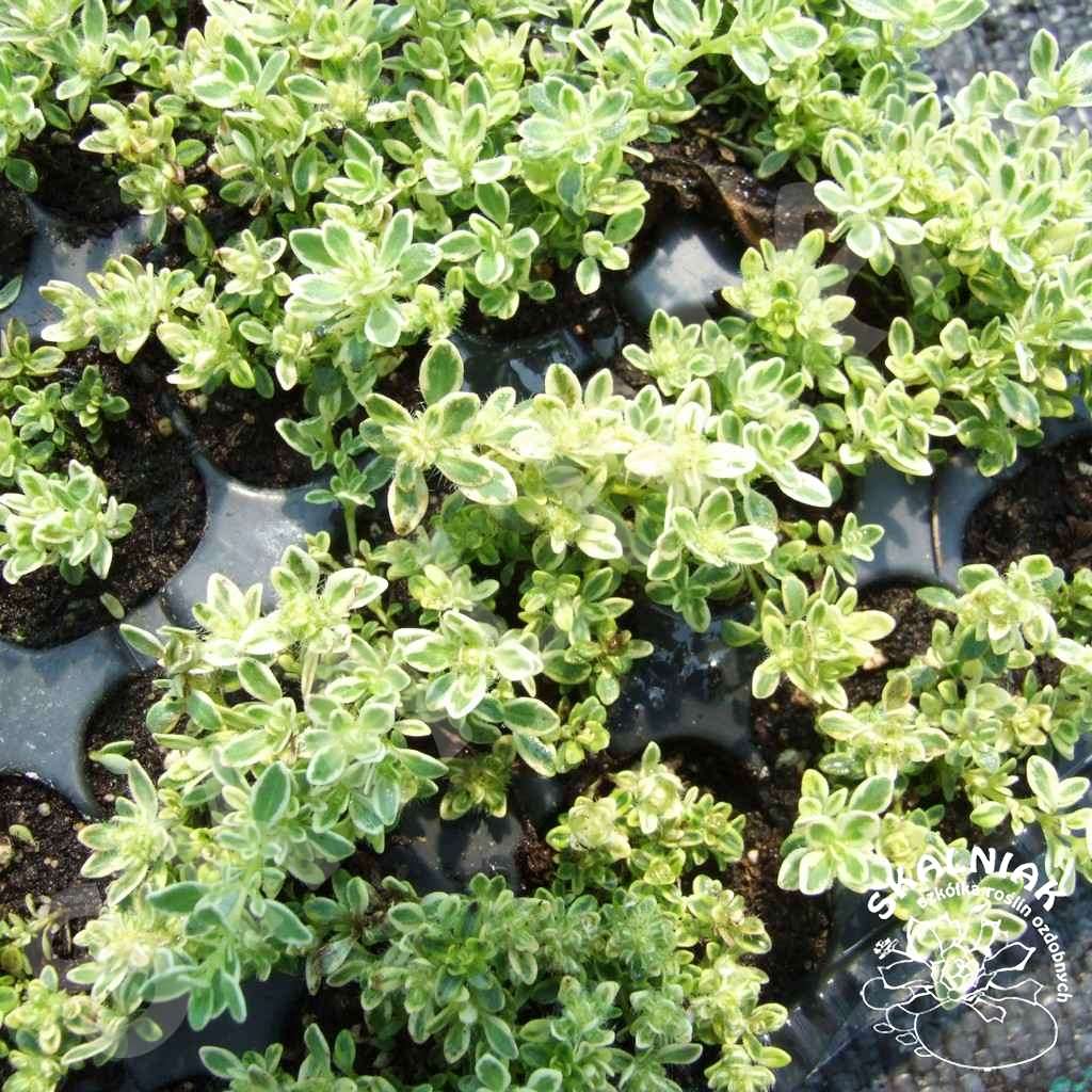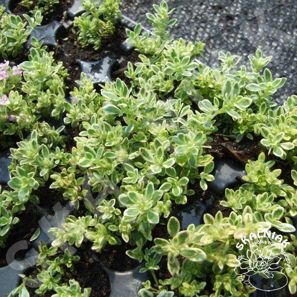Macierzanka piaskowa 'Highland Cream' - to niska bylina, tworząca niskie kobierce. Macierzanka ta kwitnie jasnoliliowymi kwiatami na przełomie wiosny i lata. Ta odmiana macierzanki ma liście cytrynowe z białą obwódką. Macierzanki, podobnie jak goździki, floksy szydlaste i żagwiny cenione są przez ogrodników i wykonawców zieleni, ponieważ są to jedne z najtrwalszych i najładniejszych bylin zadarniająco-dywanowych, rosnących w pełnym słońcu. Wszystkie macierzanki są łatwe w uprawie - rosną dobrze we wspomnianym stanowisku w słonecznym i półcieniu, dobrze się czują posadzone w podłożu przepuszczalnym. W warunkach polskich bardzo dobrze znoszą zimę. Macierzanki bardzo bobrze zadarniają teren tworząc niskie kopułki - dywaniki przypominające kępki mchu. Byliny te ładnie wyglądają na skarpach, murkach, skalniakach, przodach rabat. Można je stosować jako rośliny obwódkowe i jako wykończenie kwietnika. Nadają się do nasadzeń w donicach i różnych pojemnikach. Macierzanki doskonale komponują się z innymi bylinami poduszkowymi np.: goździkami, floksami szydlastymi, żagwinami, posłonkami, rozchodnikami i rojnikami. Polecane są do każdego typu ogrodu - zarówno nowoczesnego, jak i wiejskiego. Macierzankę cytrynową można również polecić do ogrodów ziołowych, gdzie dobrze skomponuje się z szczypiorkiem siedmiolatką, tymiankiem, lebiodką-oregano, lubczykiem, kminkiem i innymi ziołami. Wszystkie produkowane przez nas macierzanki można sadzić na zielonych dachach. Są to byliny polecane dla osób zaczynających swoją przygodę z ogrodnictwem.