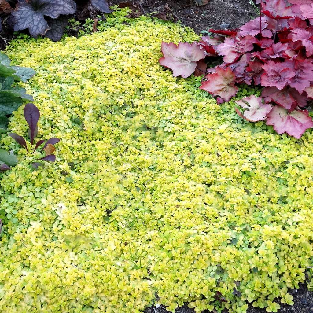 Dzięki niskiej, rozłogowej formie, przetacznik 'Sunshine' idealnie nadaje się jako roślina okrywowa i kontrastowa do roślin o ciemniejszych liściach. Świetnie komponuje się z: