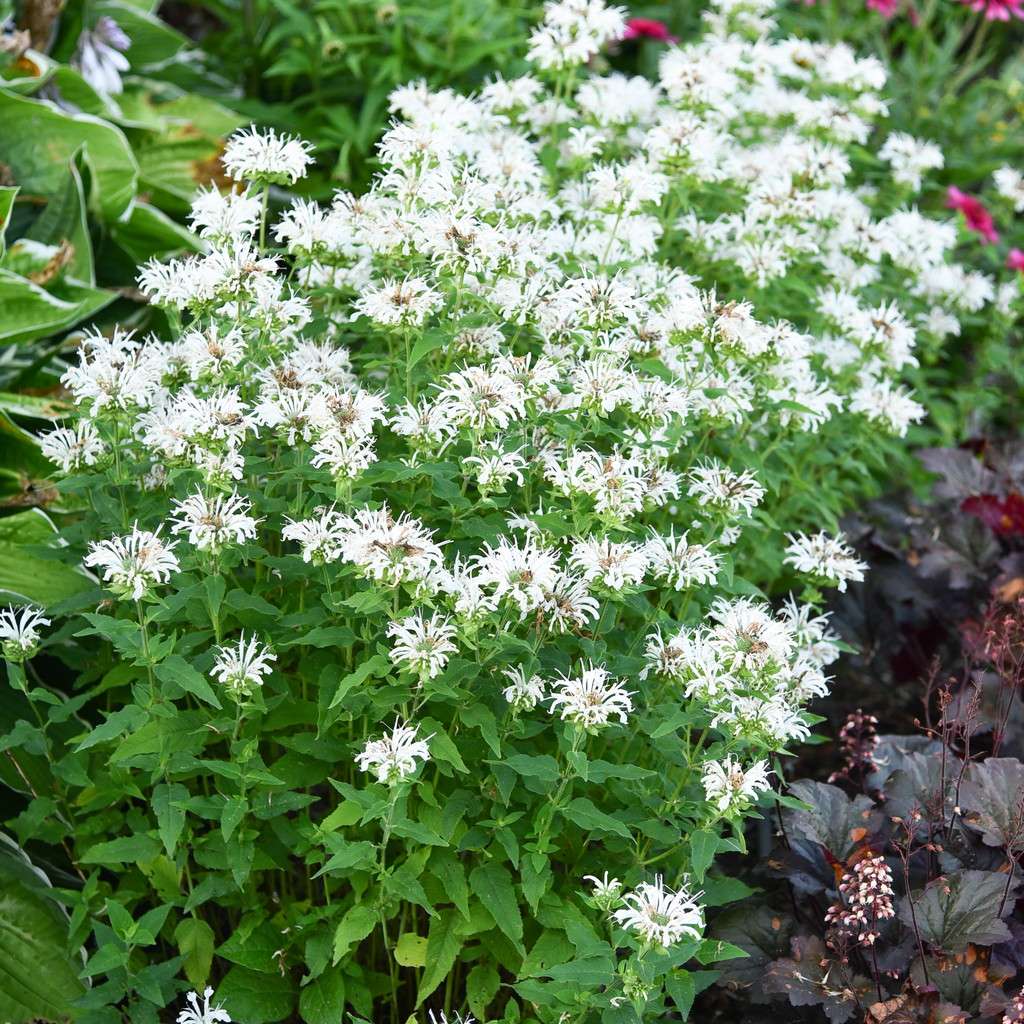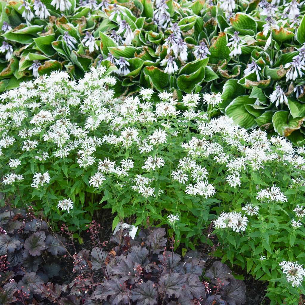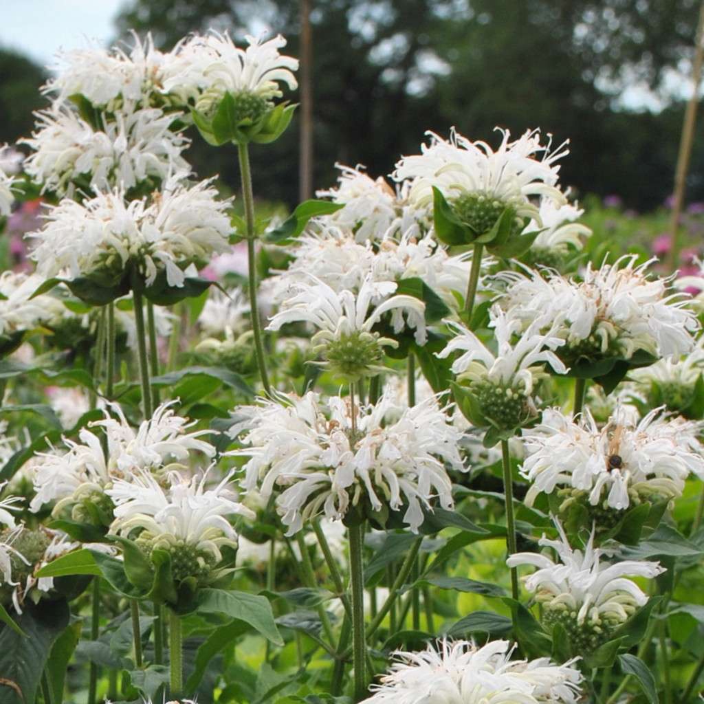 Pysznogłówka ogrodowa 'Bee-Bright' - to wieloletnia bylina kępiasta. Kwitnie latem. Kwiaty białe, przypominają zwichrzoną główkę. Liście mają charakterystyczny aromat bergamotki. Łodygi są kwadratowe, wyprostowane sięgające nawet 70 cm wysokości. Pysznogłówka jest rośliną miododajną, przyciąga licznie trzmiele, pszczoły i motyle. Bylina ta jest trwała, zamiera na zimę i na wiosnę odnawia się z karpy korzeni. Pięknie wygląda w ogrodach w stylu naturalistycznym, angielskim, wiejskim, ziołowym. Często jest sadzona w ogrodach działkowych i dydaktycznych. Możemy ją posadzić na rabacie jednogatunkowej w dużych ogrodach. Najlepiej rośnie w pełnym słońcu na glebie średnio żyznej. Polecamy łączyć ją z innymi bylinami kwitnącymi w podobnym okresie, np. ostróżkami, makami, złocieniami, lnem, przetacznikami, rudbekią, szałwią, posłonkiem, dzielżanem, odętką, miskantami czy jeżówkami.