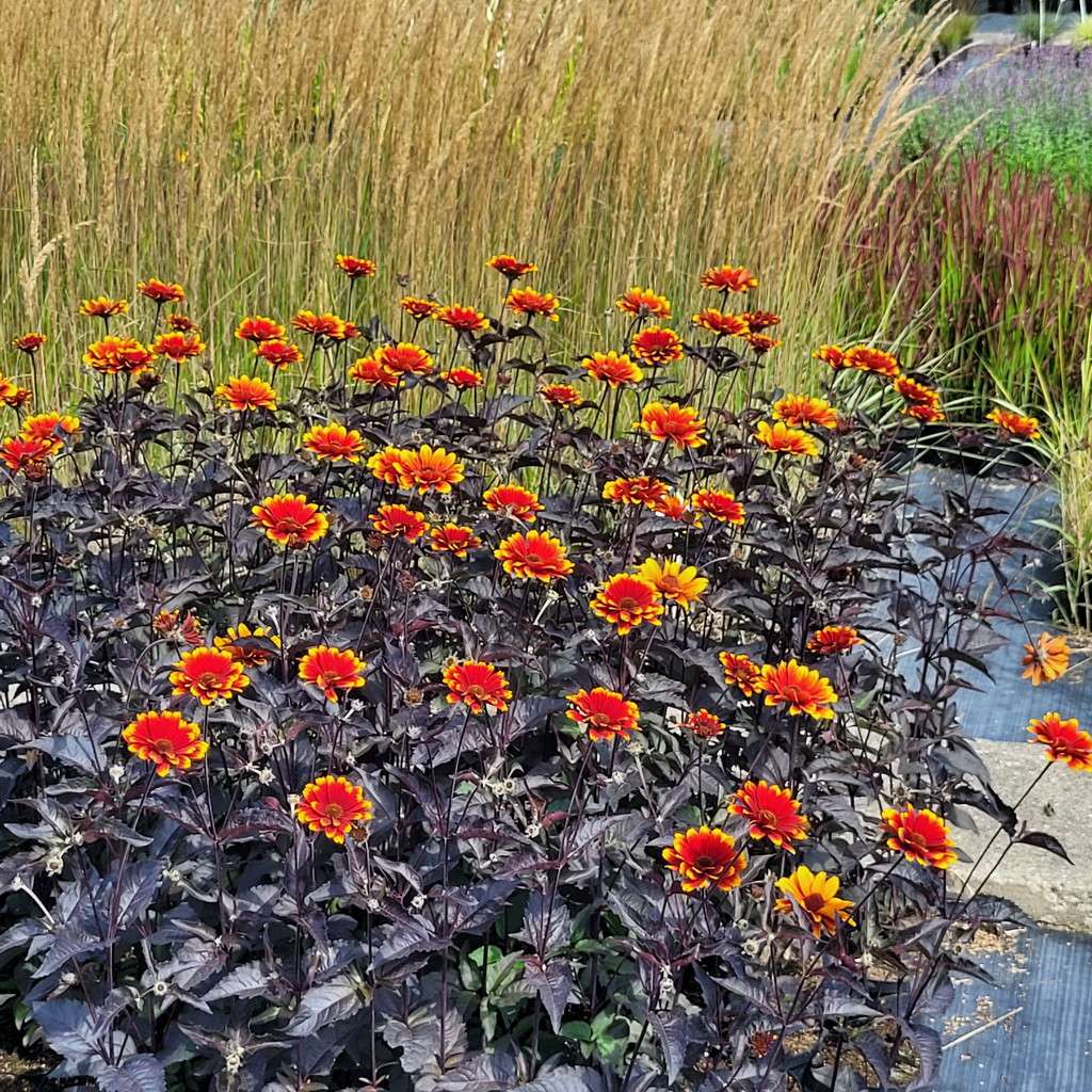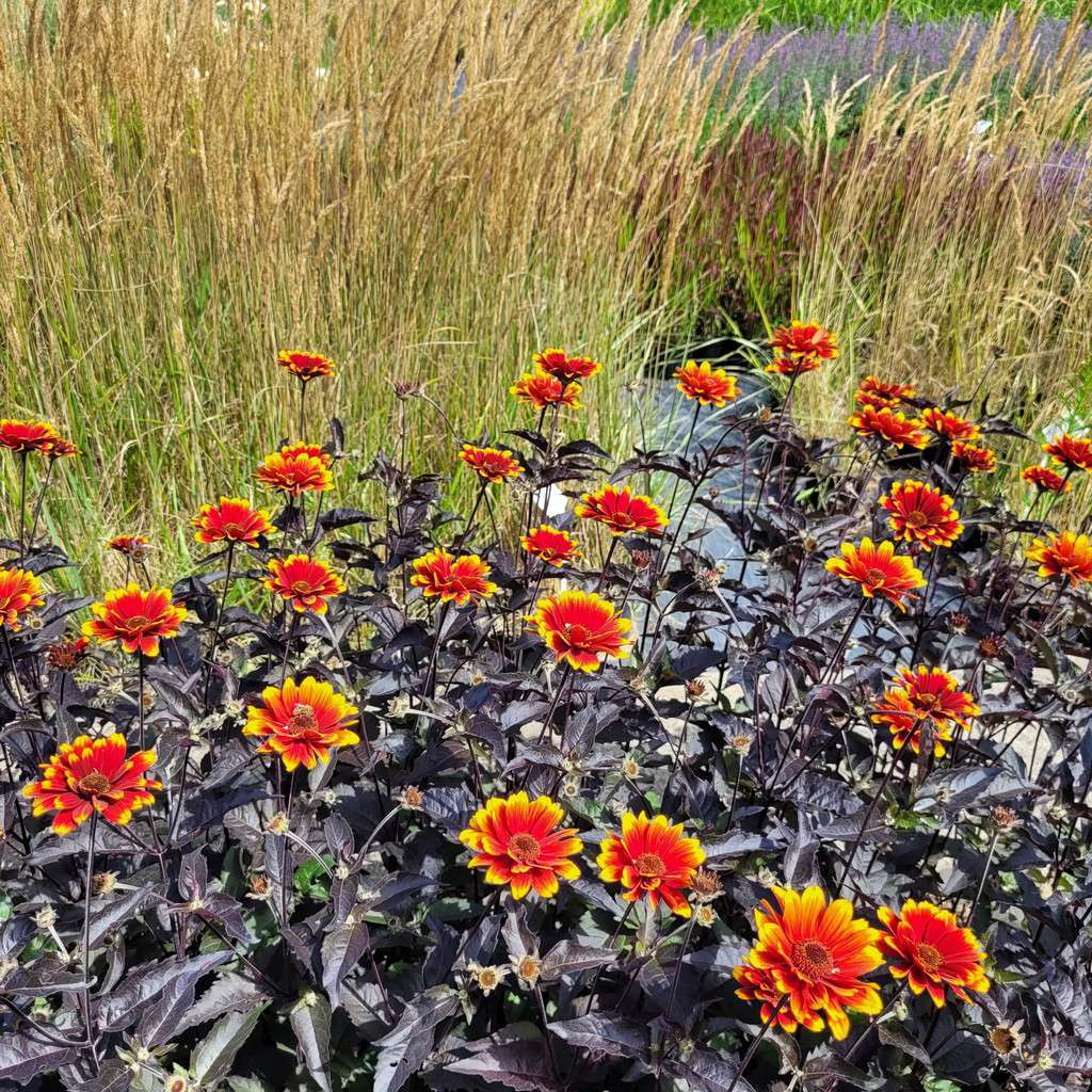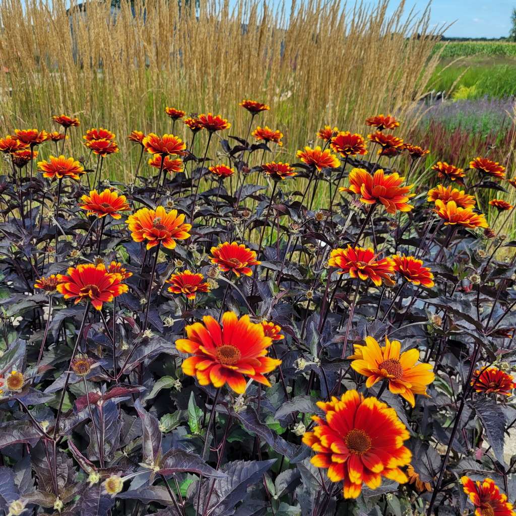 Słoneczniczek 'Bonfire Sunset' pięknie wygląda w ogrodach w stylu wiejskim, angielskim, parkowym, rustykalnym. Bardzo dobrze wygląda jako indywidualna grupa roślin (soliter), tworząc dużą plamę kolorystyczną. Słoneczniczek tworzy ładne zestawienie na rabacie z jeżówkami, pysznogłówką, ostróżką, rudbekią, gaurą i innymi bylinami pełni lata.