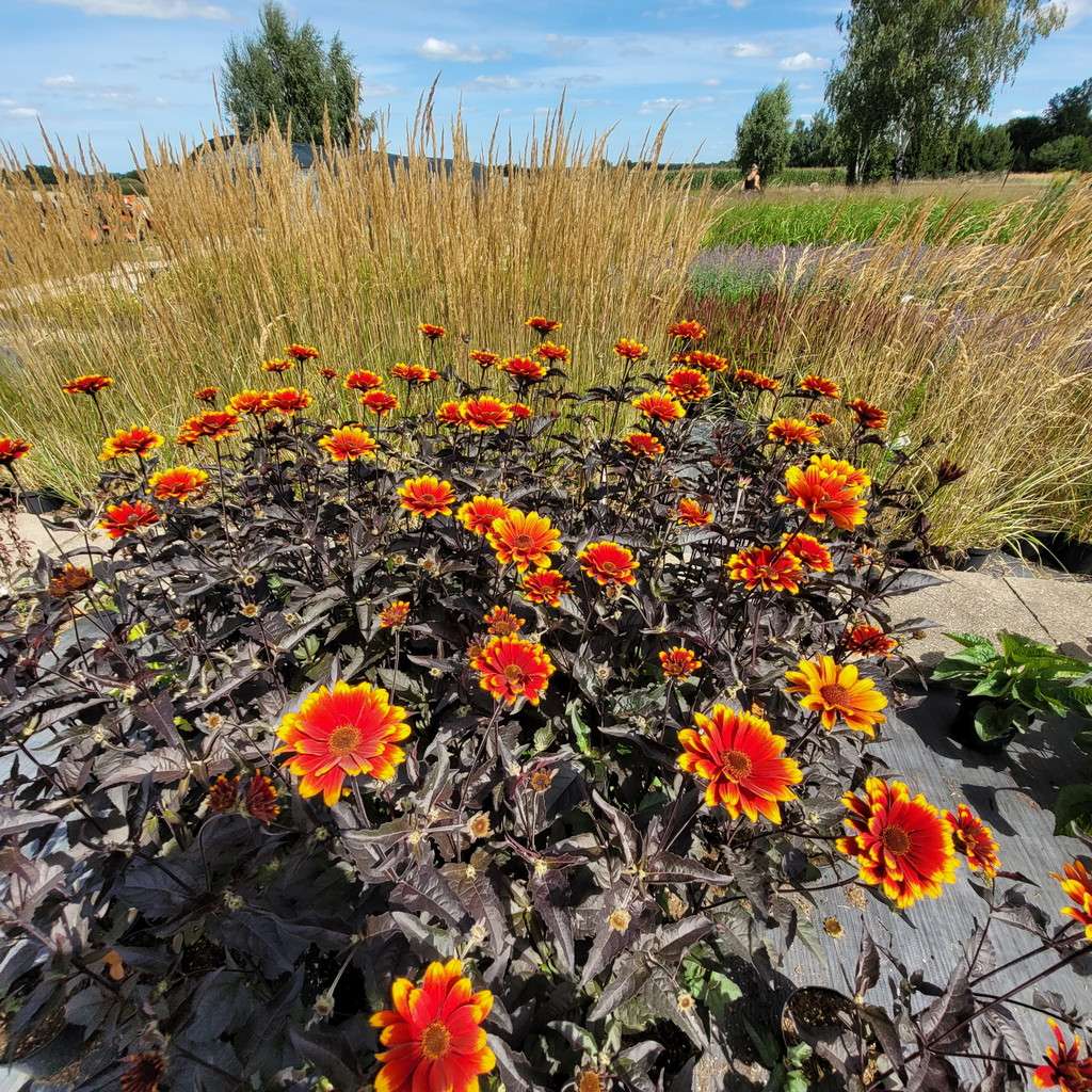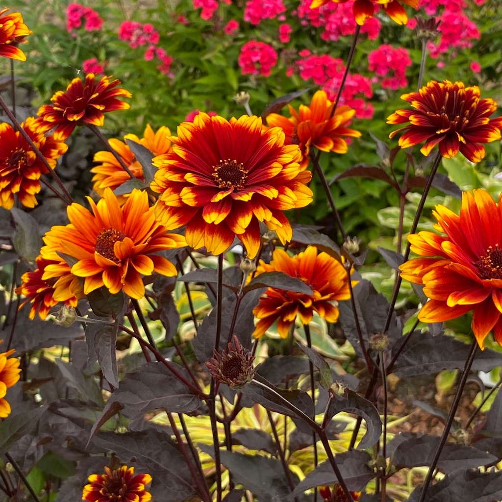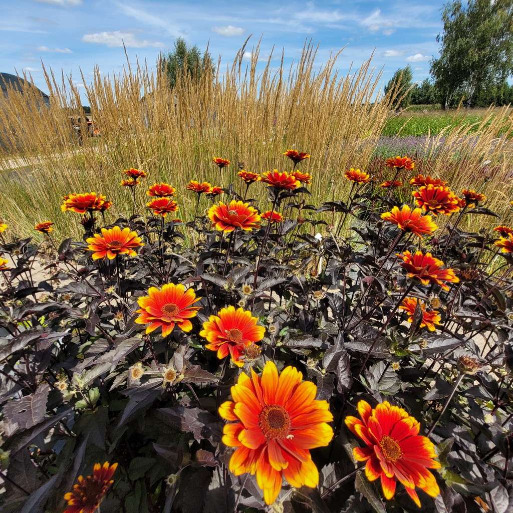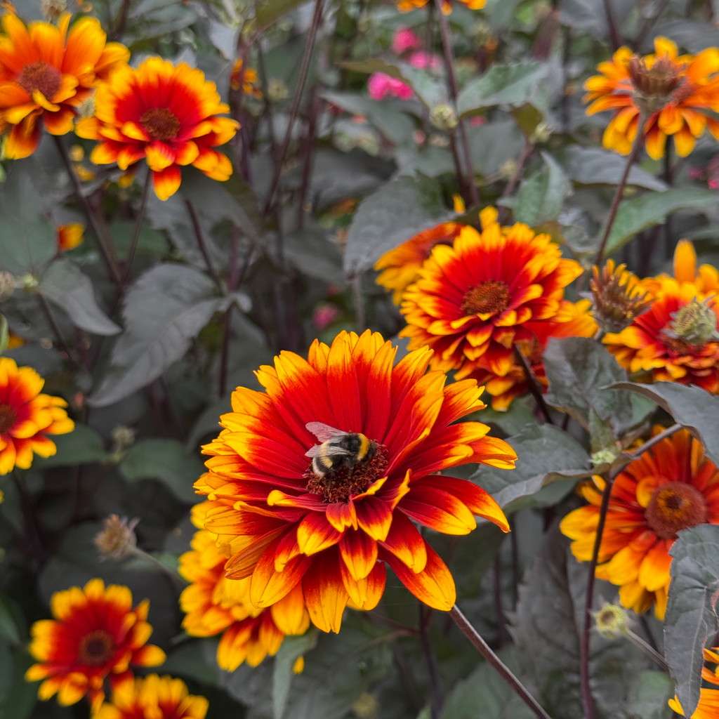 Słoneczniczek 'Bonfire Sunset' pięknie wygląda w ogrodach w stylu wiejskim, angielskim, parkowym, rustykalnym. Bardzo dobrze wygląda jako indywidualna grupa roślin (soliter), tworząc dużą plamę kolorystyczną. Słoneczniczek tworzy ładne zestawienie na rabacie z jeżówkami, pysznogłówką, ostróżką, rudbekią, gaurą i innymi bylinami pełni lata.