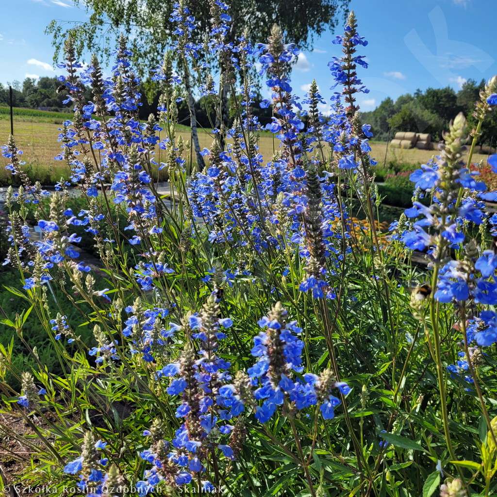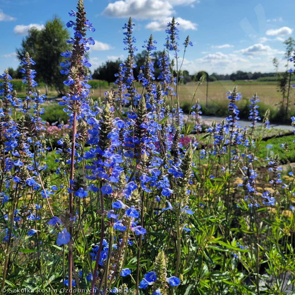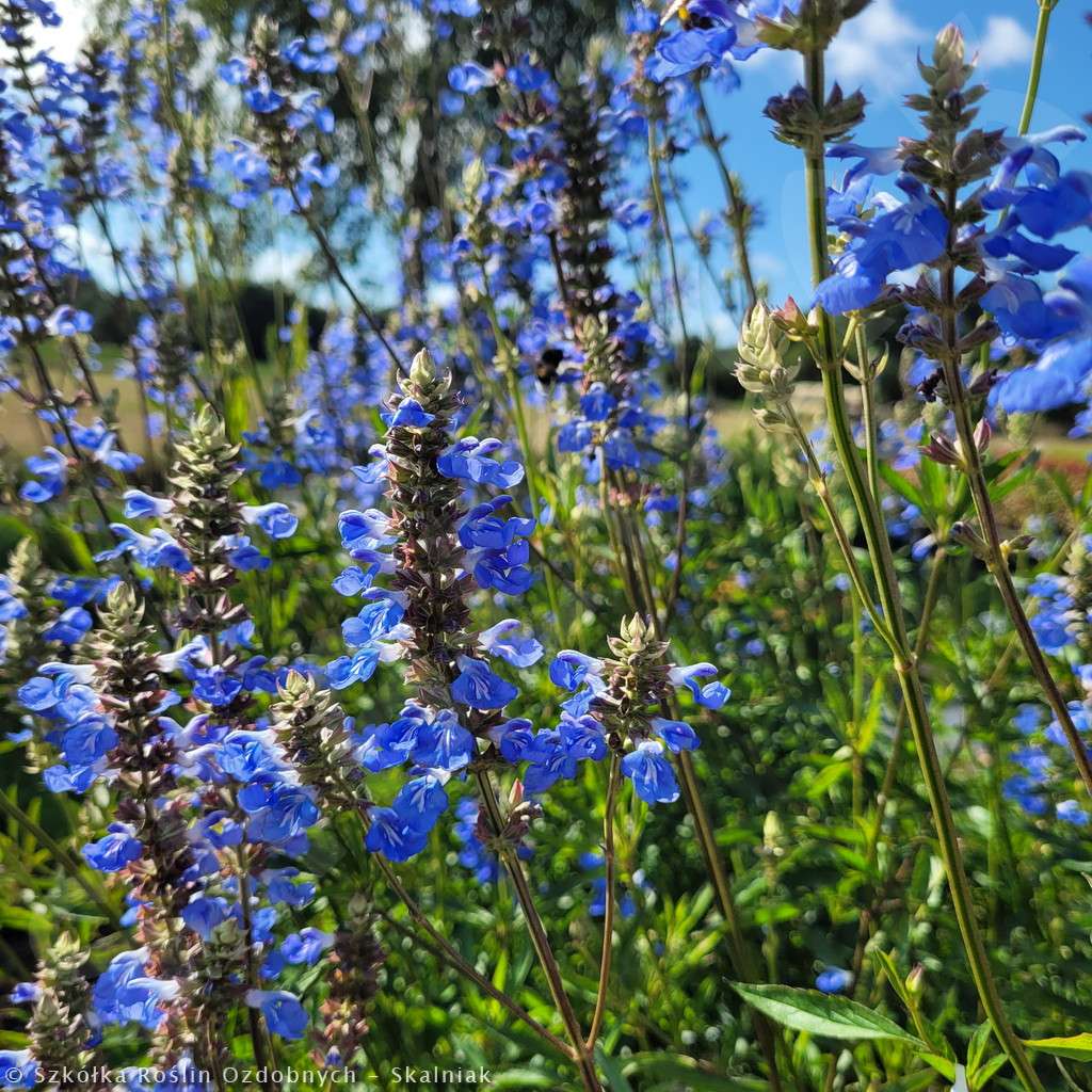 Szałwia bagienna to wieloletnia, kępiasta bylina dorastająca w czasie kwitnienia do oszałamiających rozmiarów - 120 cm wysokości. Ta wysokość czyni ją najwyższą z dostęnych na naszej stronie szałwii. Szałwia bagienna kwitnie od VII do X dużymi jak na szałwię kłosami w kolorze błłękitnym. Szałwia bagienna lubi stanowiska słoneczne, lekko wilgotne. Szałwia bagienna jest odporna na mróz. Szałwię bagienną sadzimy rabatach kwiatowych, jako ostatnie piętro rabaty. Stanowi ona fantastyczne, błłękitne tło dla innych niższych bylin. Jest idealna do obsadzeń naturalistycznych. Dobrze komponuje się z np.: przetacznikiem, nachyłkami, liliowcami, jeżówką, gaurą, floksami wiechowatymi, drakwią, rozchodnikami i trawami ozdobnymi, np. kostrzewą siną, rozplenicą japońską czy miskantami.