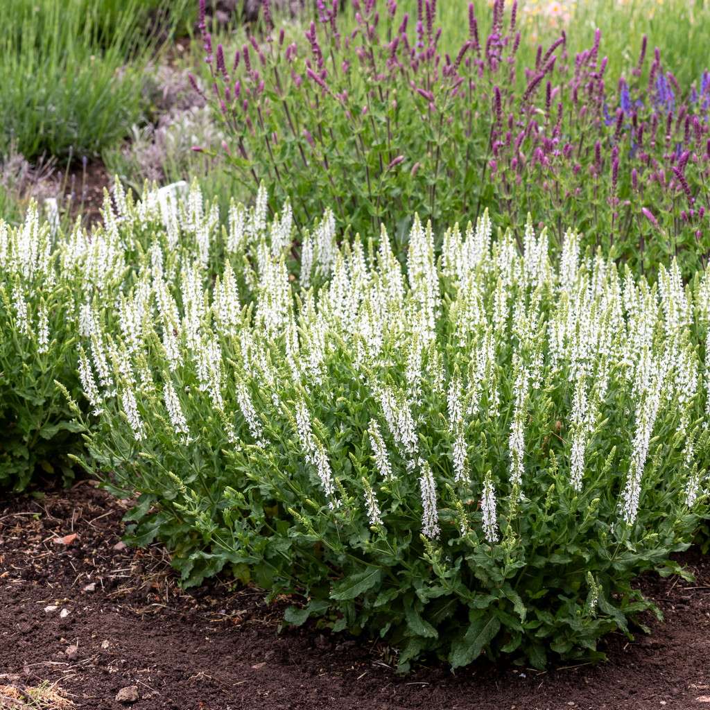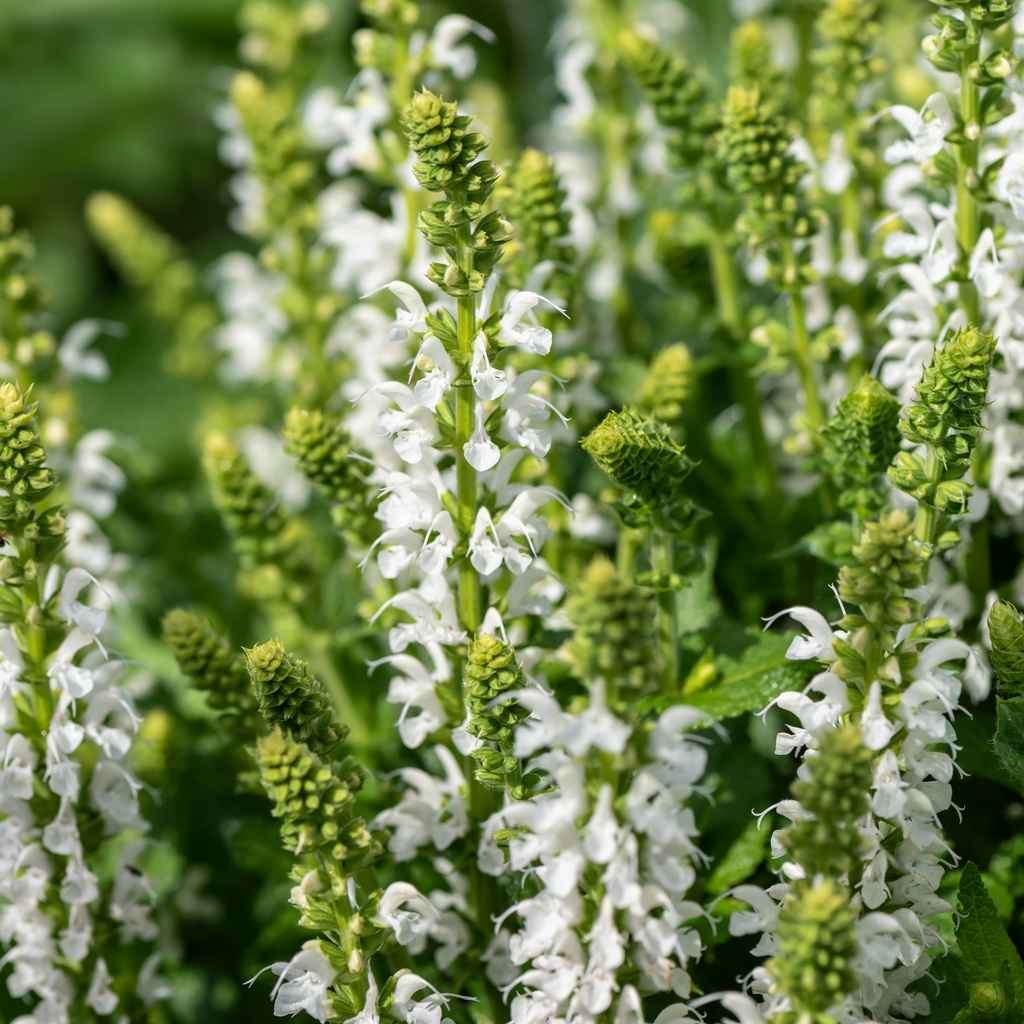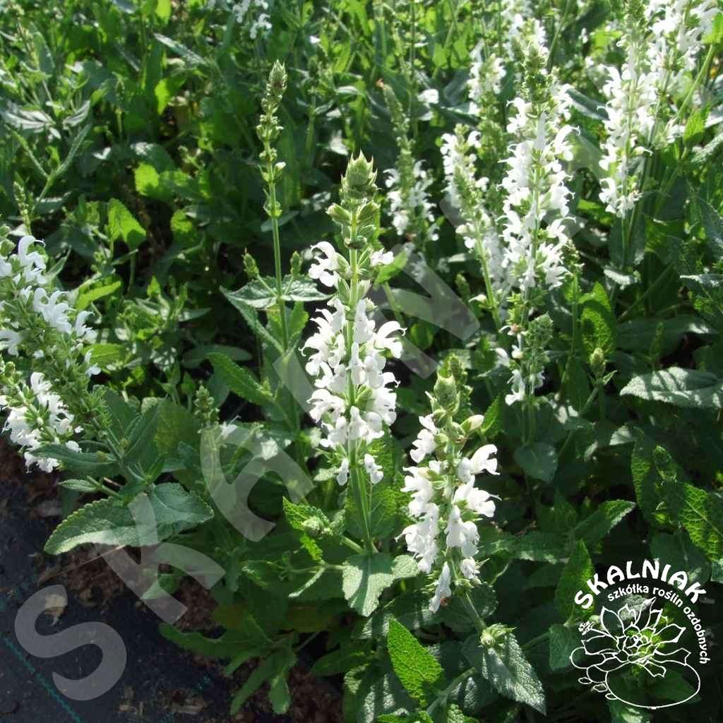 Szałwia omszona 'Adrian' - to wieloletnia, kępiasta bylina dorastająca w czasie kwitnienia do 50 cm wysokości i 30 cm szerokości. Szałwia omszona kwitnie białymi kwiatostanami, zebranymi w kłos latem. Szałwia omszona ma mocno omszone liście, dlatego można ją sadzić na stanowiskach słonecznych, ubogich w wodę. Odmiana 'Adrian' jest odporna na mróz. Szałwię omszoną tak jak szałwię lekarską można sadzić w ogródkach ziołowych, na rabatach kwiatowych, skalniakach, w żwirach. Szałwię omszoną można też sadzić w skrzyniach tarasowych i balkonowych. Jest idealna do obsadzeń naturalistycznych. Dobrze komponuje się z innymi bylinami, np.: przetacznikiem, nachyłkami, liliowcami, rozchodnikami i rojnikami.
