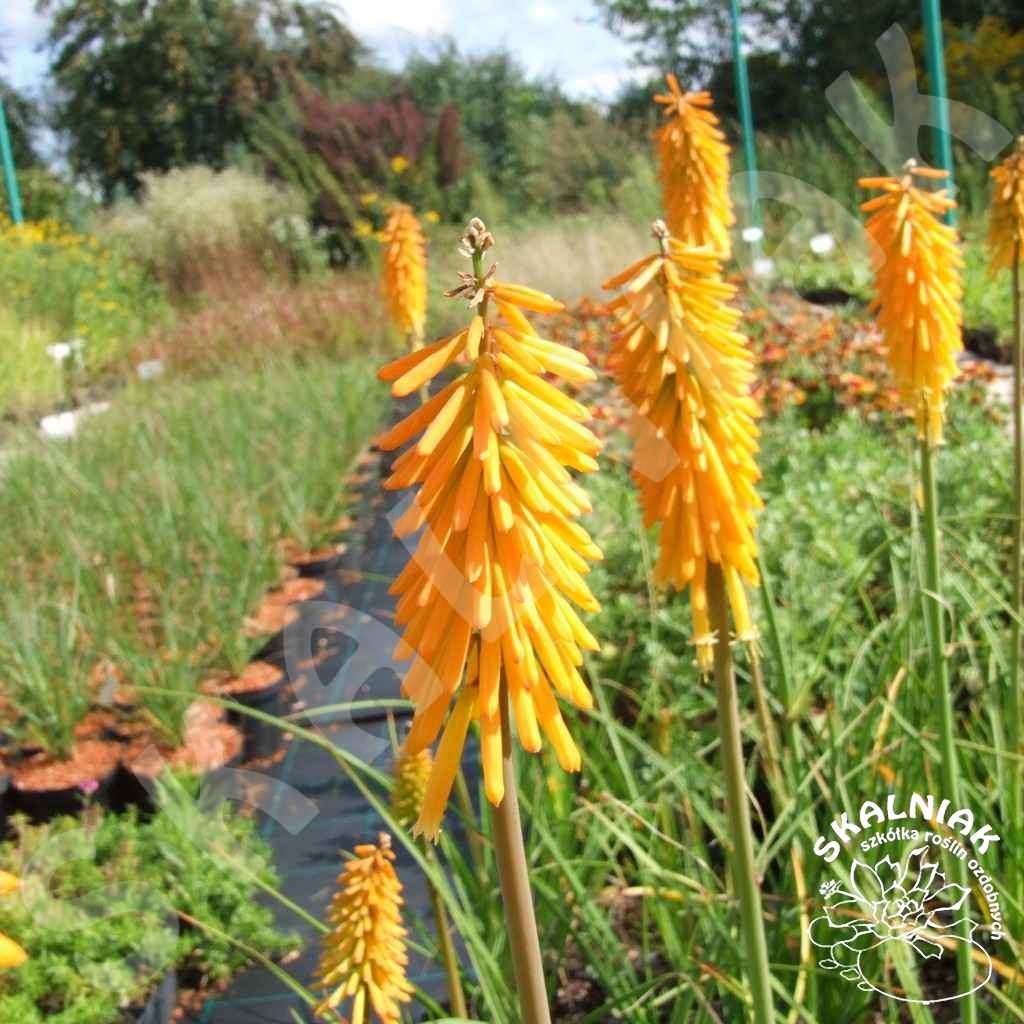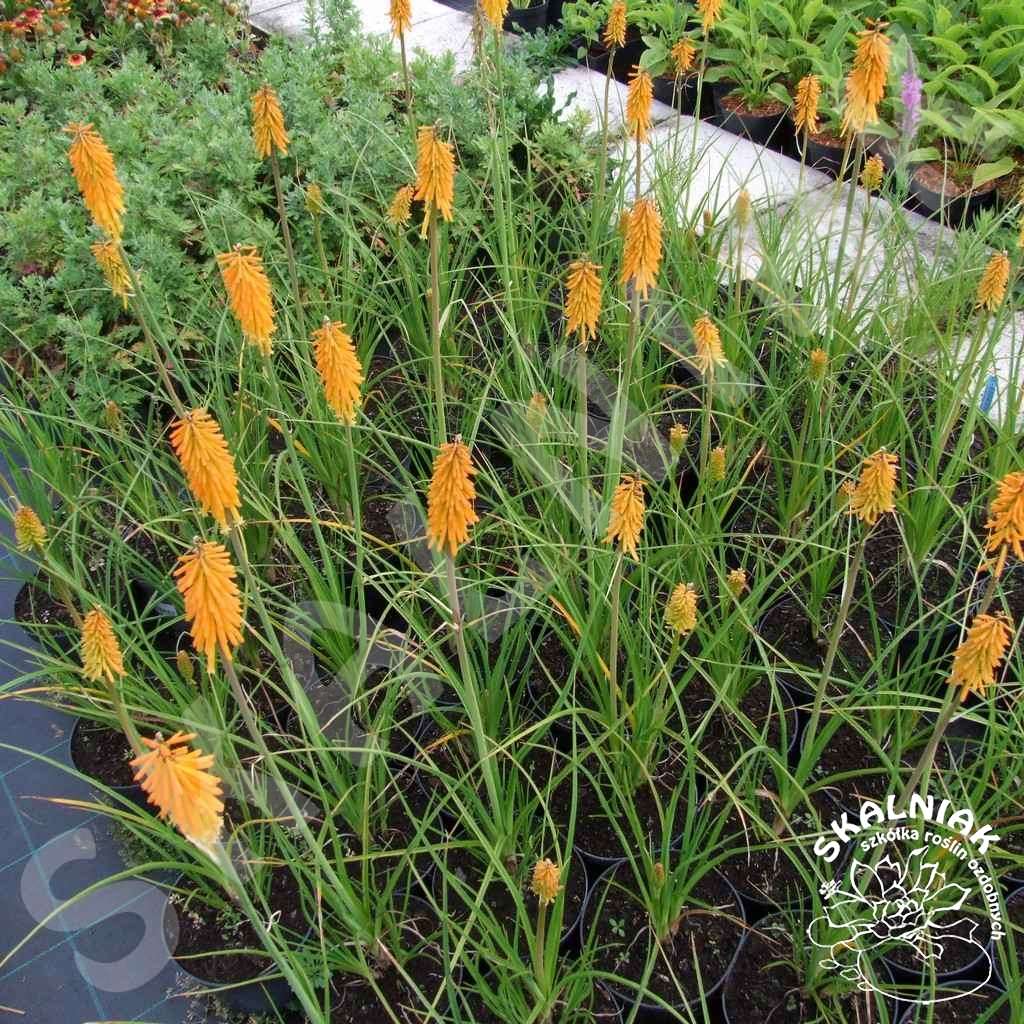 Trytoma groniasta 'Mango Popsicle' - to wieloletnia, egzotyczna bylina, osiągająca podczas kwitnienia 60-75 cm wysokości. Kniphofia uvaria ma charakterystyczne równowąskie liście zebrane w gęstą kępę, z której wyrastają pędy kwiatostanowe. Trytoma groniasta 'Mango Popsicle' ma okazałe kwiatostany koloru pomarańczowego. Pokrojem przypomina jukkę kalifornijską. Bylina ta kwitnie od VI do IX. Trytoma bardzo dobrze udaje się na stanowiskach słonecznych, na glebie przepuszczalnej. Trytoma doskonale wygląda jako soliter lub roślina ostatniego piętra rabaty, tworząc tło dla innych roślin. Kniphofia uvaria dobrze znosi przymrozki, ale zaleca się okrycie jej na zimę. Ładnie wygląda na rabatach słonecznych w połączeniu z innymi bylinami, np. werbeną, lawendą, galardią, a także rozchodnikami i rojnikami.