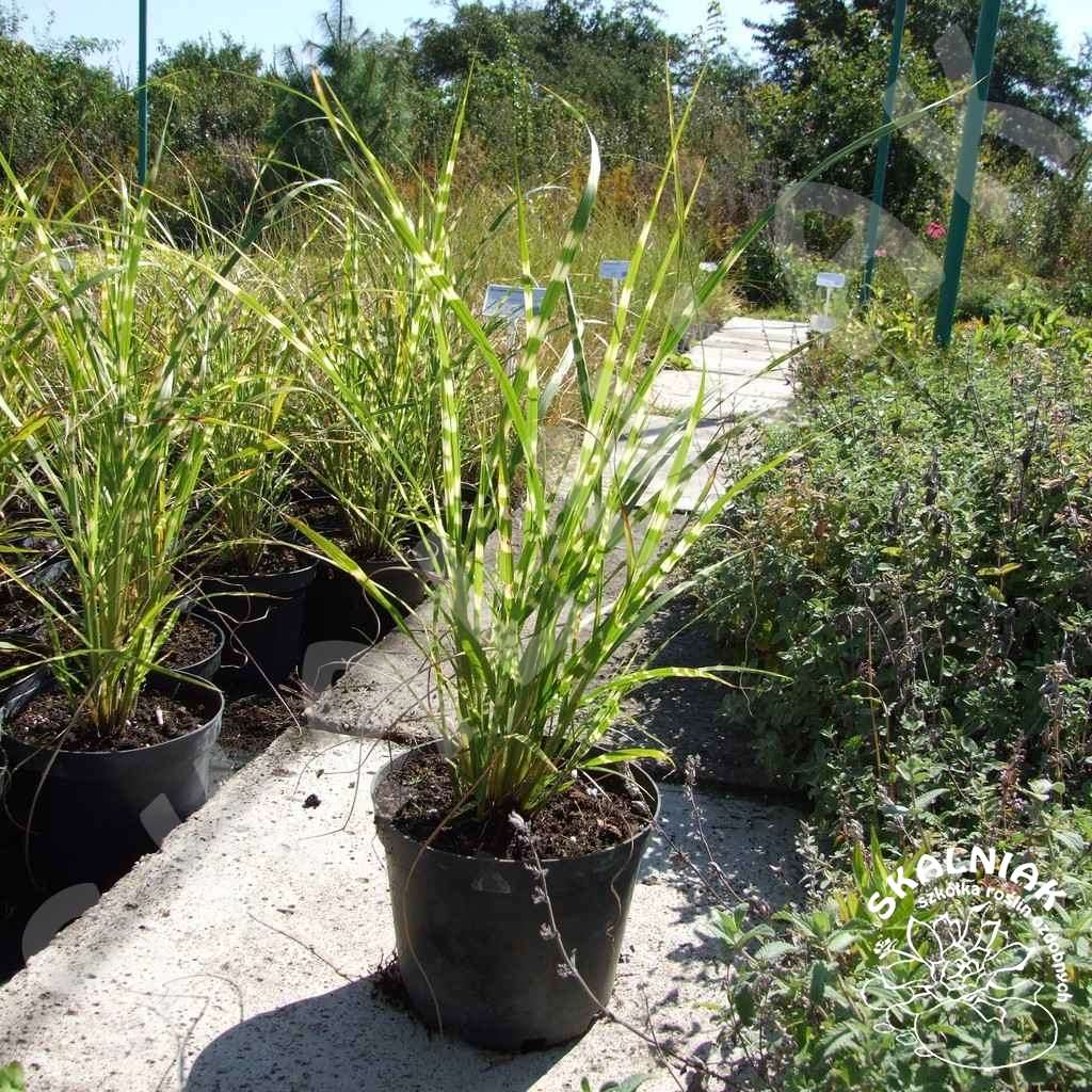 Miskant chiński 'Zebrinus' - to trawa, która tworzy bardzo gęste kępy. Bardzo popularna odmiana ze względu na liście, które są dość szerokie, zielone - żółto nakrapiane, łukowato wygięte - przypominające wodę wytryskującą z fontanny. Kępa osiąga do 2,0 m w czasie kwitnienia. Zakwita tylko po ciepłym lecie i w trakcie długiej pogodnej jesieni.