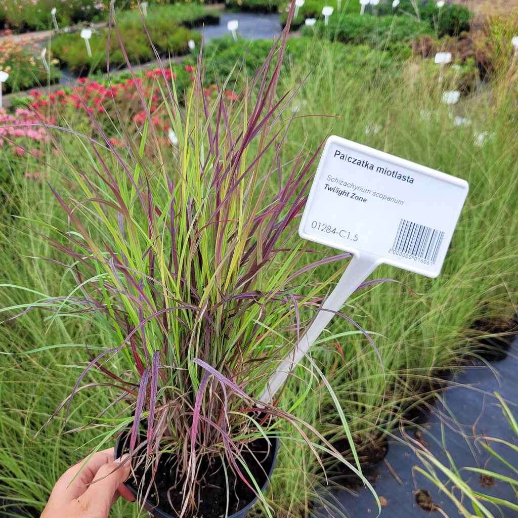 Palczatka 'Twilight Zone' to kępiasta trawa, osiągająca 80 cm wysokości w trakcie kwitnienia. Kępy dorastają do 50 cm szerokości. Trawa ta wygląda na rabacie bardzo efektownie ze względu na swoją ładną błękitnofioletową kolorystykę.