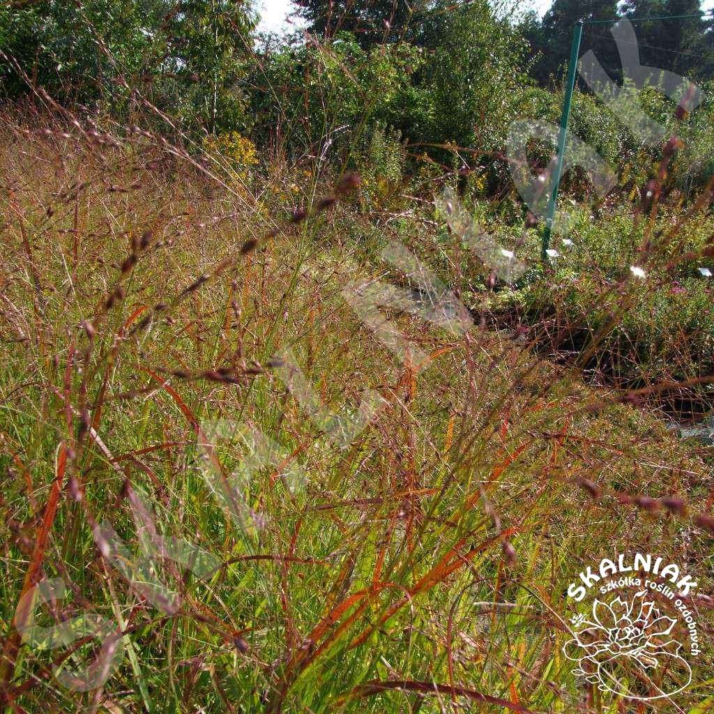 Proso rózgowate 'Hanse Herms' - jest to ozdobna trawa kępiasta o strzelistym pokroju. Proso 'Hanse Herms' dorasta do 60-90 cm. Trawa ta ma liście jasnozielone, których końcówki wybarwiają się na czerwono. Na przełomie lipca i sierpnia trawa zakwita - kwiatostan jest lekki, zwiewny, delikatnie różowy. Późną jesienią , liście prosa 'Hanse Herms' wybarwiają się na intensywny kolor żółci pomarańczu i czerwieni. Jest to trawa zamierająca na zimę i zimująca w postaci kępy korzeniowej. Do dobrego wzrostu wymaga stanowiska słonecznego, podłoża próchnicznego, lekko wilgotnego. Proso jest trawą odporną na okresowe susze, nie znosi przelewania. Wszystkie odmiany ozdobne prosa rózgowatego polecane są do tworzenia rabat zarówno w małych (soliterowo) jak i w dużych ogrodach (grupowo). Proso ze względu na dobre zimowanie i małe wymagania polecane jest do obsadzeń w terenach miejskich i w parkach. Trawę tą można łączyć z innymi bylinami, np. jeżówką, rudbekią, astrami jesiennymi, werbeną, ostróżkami.