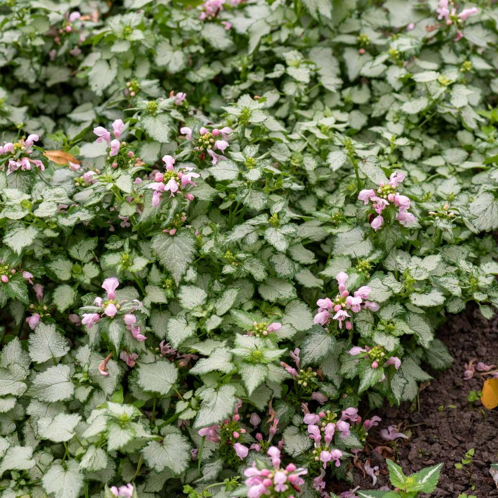 Jasnota plamista 'Pink Pewter' to niska roślina okrywowa, która szybko wypełnia wolne miejsca w półcieniu oraz cieniu. Daje efekt jasnego, srebrzystego runa pod krzewami i drzewami, a przy wilgotniejszym podłożu dobrze radzi sobie także w jaśniejszych miejscach.