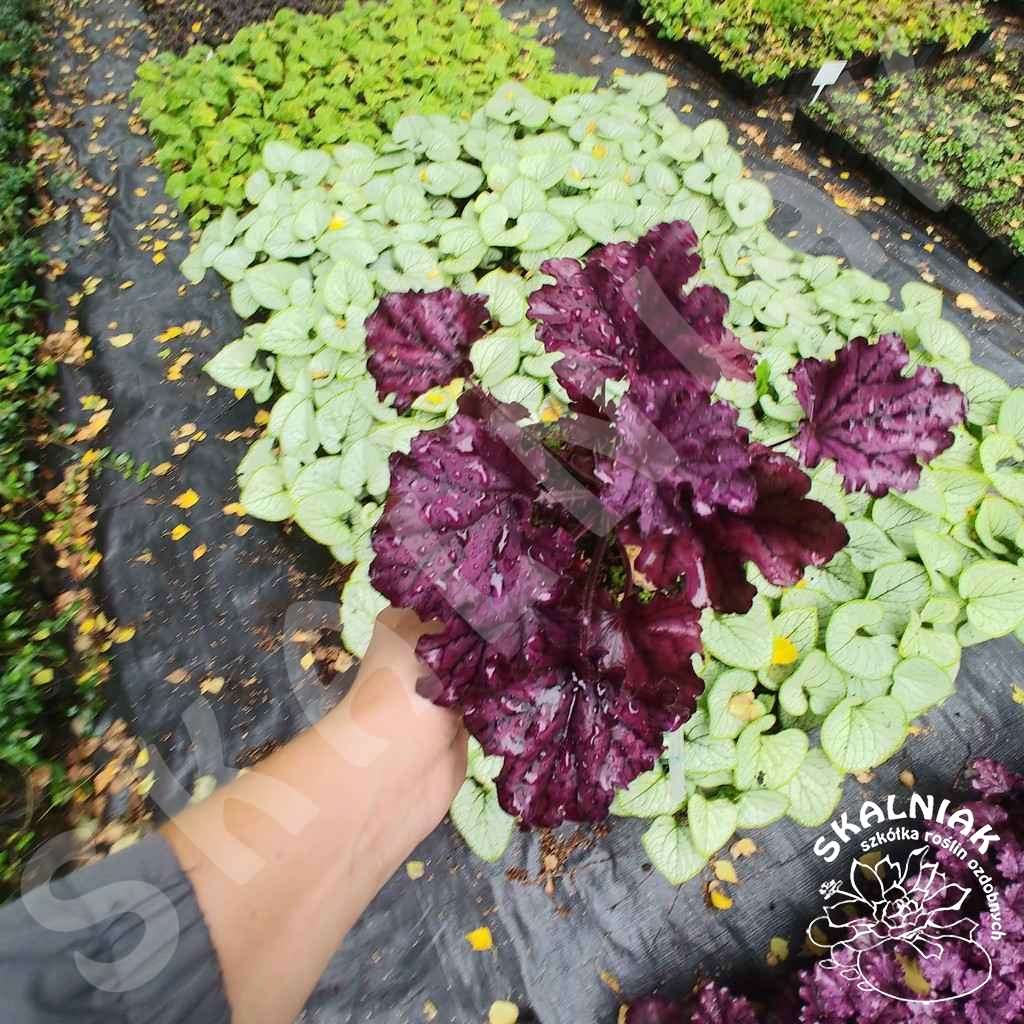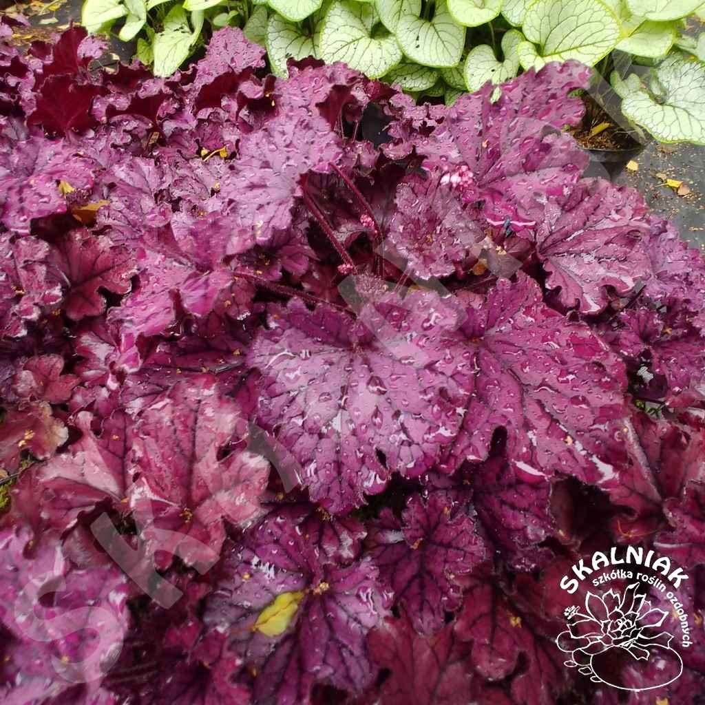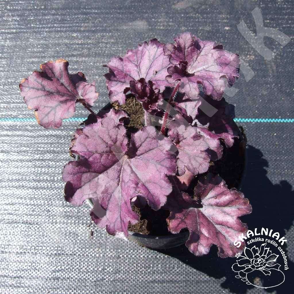 Żurawka ogrodowa 'Forever Purple' - to wieloletnia bylina kępiasta, ozdobna z liści. Odmiana 'Forever Purple' charakteryzuje się karbowanymi liśćmi koloru bordo, które są lśniące. Kępa może osiągnąć 55 cm szerokości i 20/40 cm wysokości w trakcie kwitnienia (V-IX). Kwiaty są różowopurpurowe. Lubi stanowisko słoneczne i półcieniste. W cieniu będzie kwitła bardzo skąpo. Żurawki potrzebują dość żyznej gleby i wilgotnego podłoża. Heuchera 'Forever Purple' jest dobrze przystosowana do polskich warunków klimatycznych.