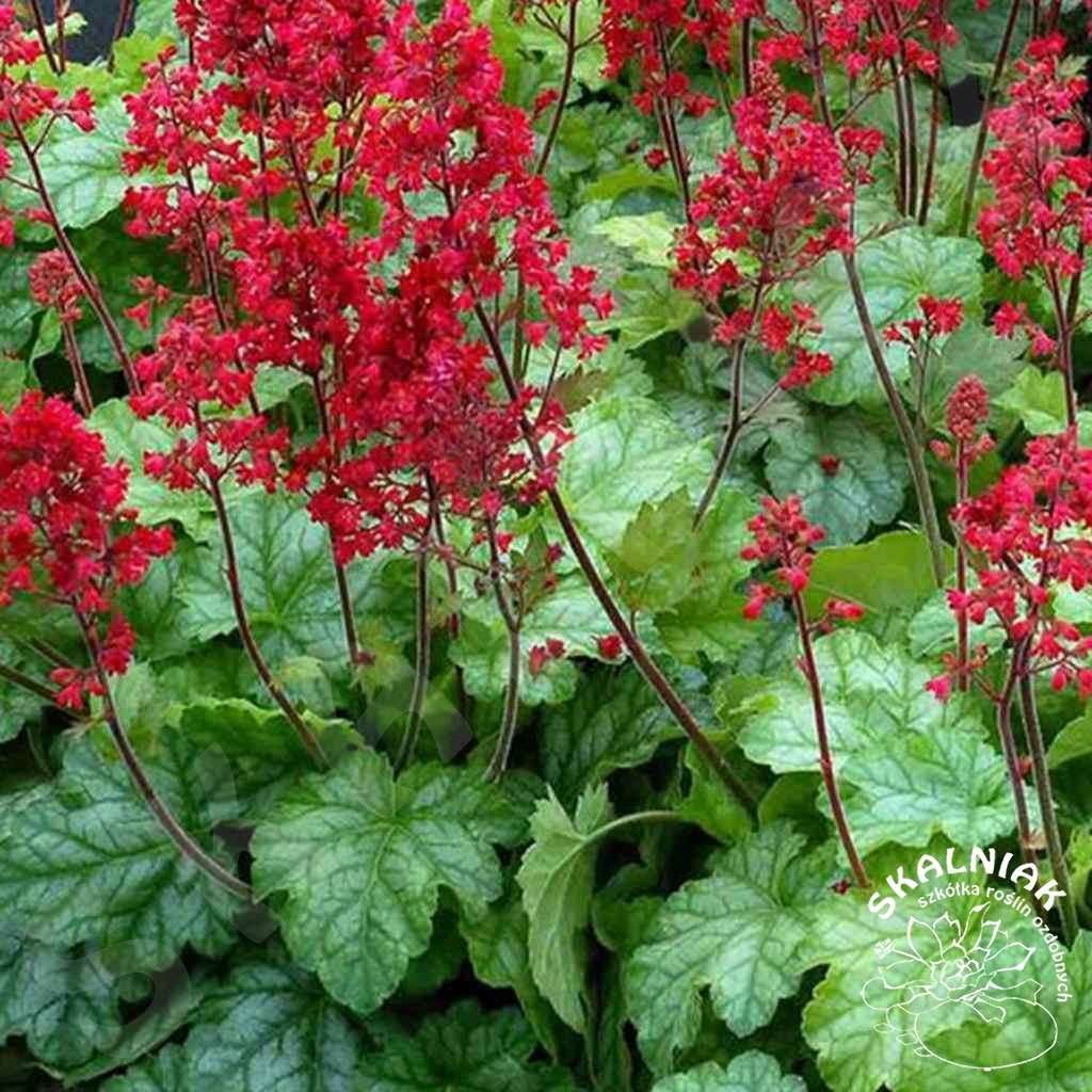 Żurawka 'Tokyo' - to wieloletnia bylina kępiasta, ozdobna z liści. Odmiana 'Tokyo' charakteryzuje się zielonymi liśćmi ze srebrnym nalotem. Kępa może osiągnąć 50 cm szerokości i 25/40 cm wysokości w trakcie kwitnienia (VII-X). Kwiaty są bardzo dekoracyjne - intensywnie czerwone. Lubi stanowisko słoneczne i półcieniste. W cieniu będzie kwitła bardzo skąpo. Żurawki potrzebują dość żyznej, świeżej gleby i wilgotnego podłoża. Heuchera 'Tokyo' jest dobrze przystosowana do polskich warunków klimatycznych.