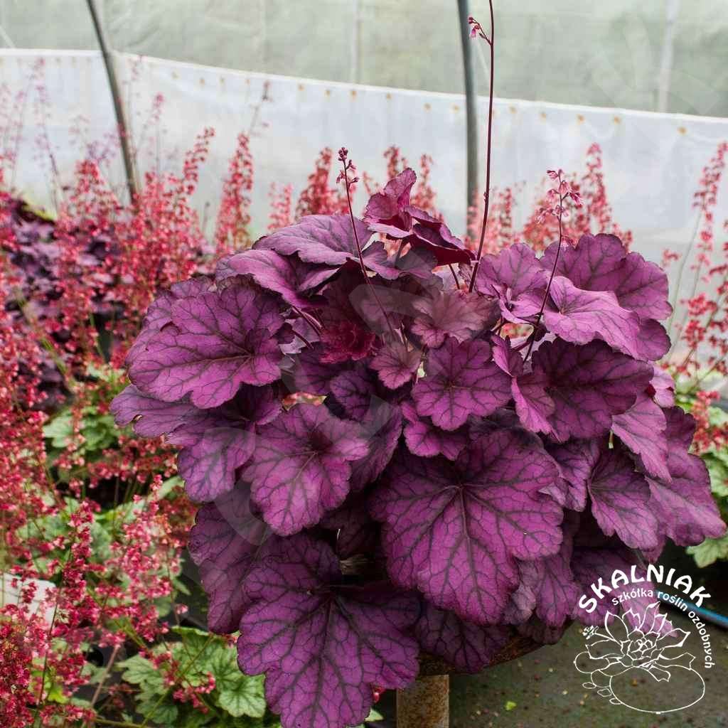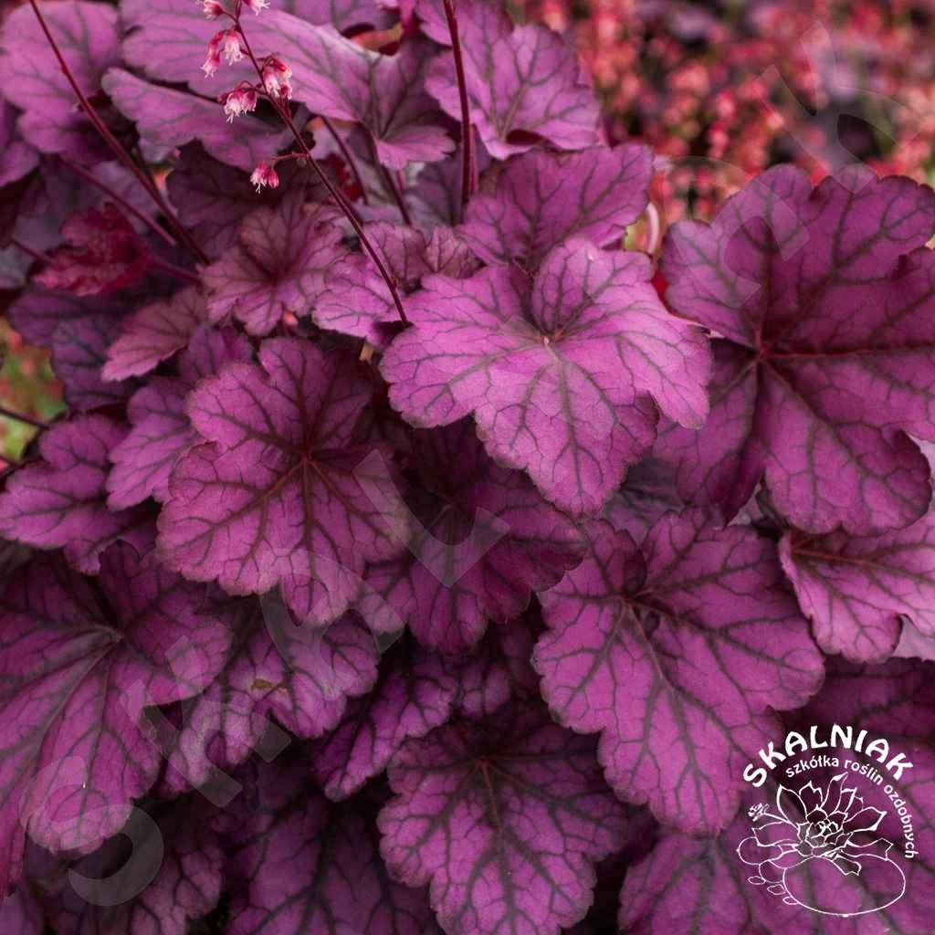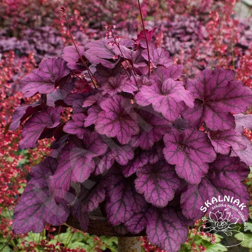 Żurawka 'Wild Rose' - to wieloletnia bylina kępiasta, ozdobna z liści. Odmiana 'Wild Rose' charakteryzuje się różowo purpurowymi liśćmi. Kępa może osiągnąć 50 cm szerokości i 20/40 cm wysokości w trakcie kwitnienia (V-VI). Lubi stanowisko słoneczne i półcieniste. W cieniu będzie kwitła bardzo skąpo. Żurawki potrzebują dość żyznej, świeżej gleby i wilgotnego podłoża. Heuchera 'Wild Rose' jest dobrze przystosowana do polskich warunków klimatycznych.